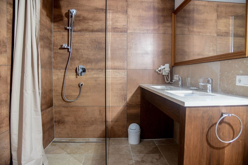wash stand, double sink, separate toilet, no. of toilets: 2, shower