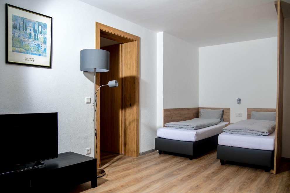 New from winter 2023/2024 - Apartment (approx. 55m2) with fully equipped kitchen including large dining table, TV, without balcony and with 2 separate bedrooms (one room with double bed, one room with double bed or two single beds, TV) with connecting door, shower/WC, ideal for a family; additional double rooms can also be booked and then for 10 people.