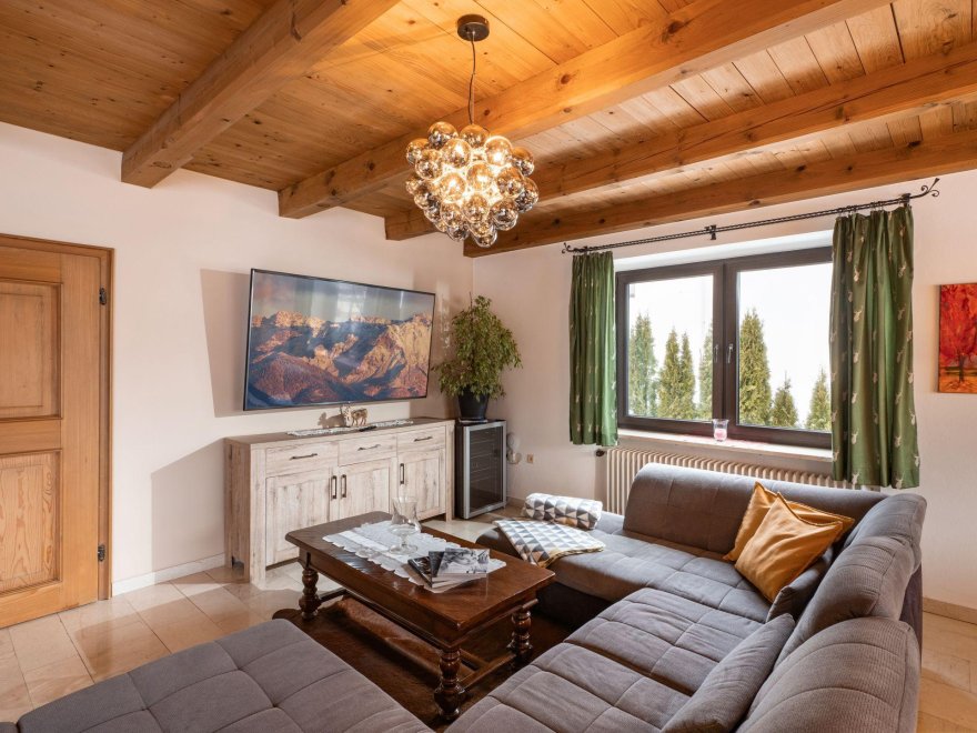 This beautiful spacious, detached villa with garden, large terrace, covered outdoor seating with barbecue facilities, and garage also offers plenty of space for larger groups with over 200m2 of living area. Opposite there is a train station and bus stop for the ski and regional bus. The mountain railway with the ski area Fieberbrunn-Leogang-Saalbach-Hinterglemm is about 3km away. The standard occupancy of the villa is 10 people - with extra beds, more people would also be possible.