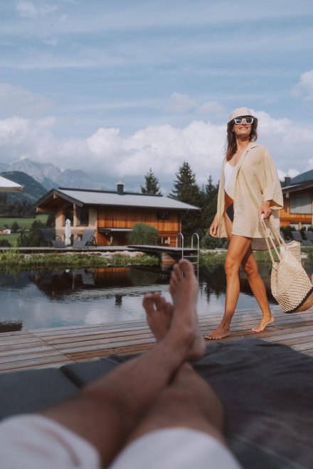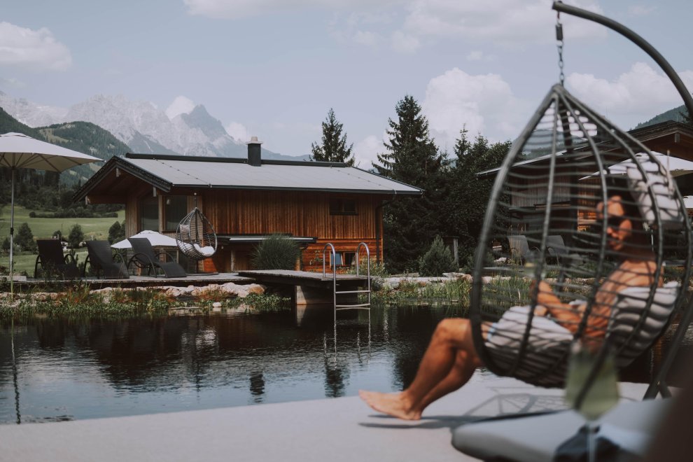 Surrounded by idyllic meadows and forests, situated next to the hotel’s natural swimming pond, our two-storey luxury water chalets invite you to relax and dream. Spend restful moments in absolute privacy, gather new strength for your everyday life and enjoy the gorgeous view of the surrounding mountains.