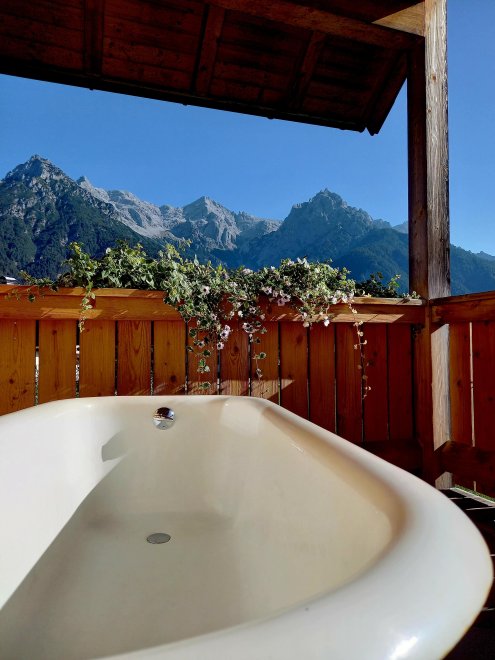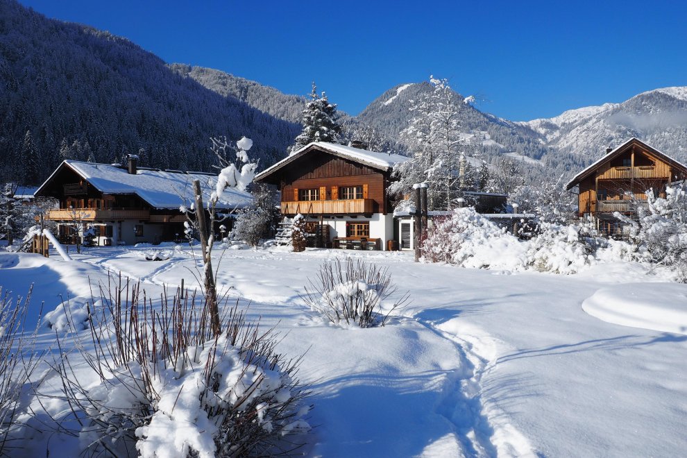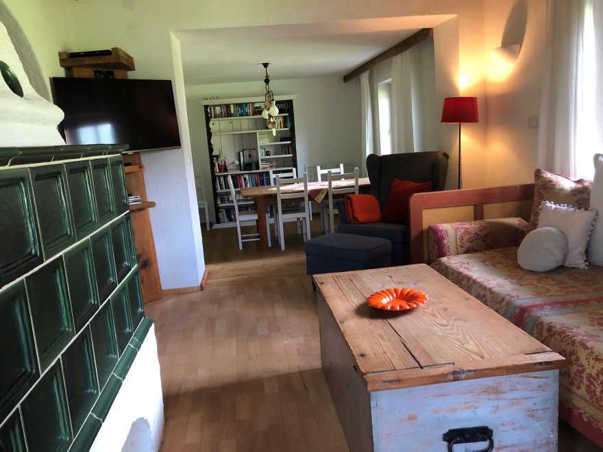 Holiday house with pleasant space of approx. 150 ms ² on three floors. Ground floor:living-room with couch and rocking chairs, SAT TV, DVD Player with sound system, big eating area and kitchen with dishwasher, oven, microwave, Nespresso machine.Storeroom with washer, toilet, small inner court and wood terrace On the first floor: two separated double rooms with shower in each case and toilet; big balcony with look at the Loferer Steinberge and the bathing area. On the 2nd floor: a family room with sleeping possibility for 4 persons, separated by bathroom with tub, shower and toilet; big balcony.