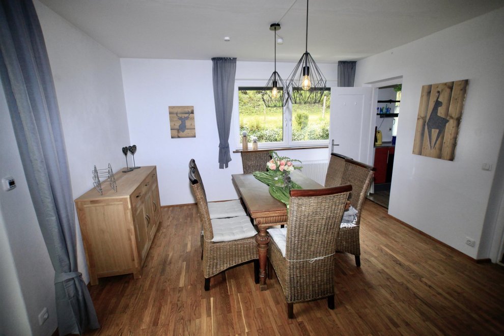”Basislager“ is a chalet with 3 bedrooms and 2 bathrooms. In addition, we offer a studio couch in each of our 2 smaller chambers. The house has four half-floors and offers plenty of space for families or small groups. On the ground floor we have the kitchen and the large combined living and dining room with a cosy fireplace. On the mezzanine you will find a large bedroom and a bathroom. The upper floor hosts 2 spacious bedrooms and 2 chambers. The sauna and a 2nd bathroom is in the basement.