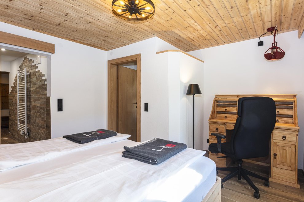 On the ground floor, a cozy double room with WC, TV, and Wi-Fi complements the offer. Available on request – ideal for families or friends who want more space.
