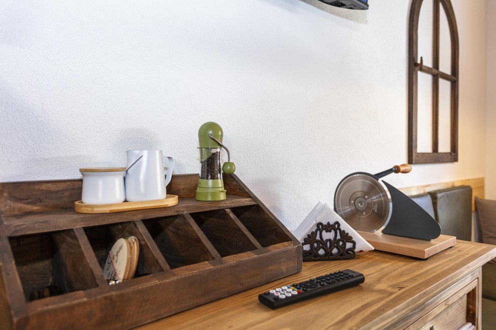 The apartments are well-equipped: balcony with UV sunshade, mountain view, bathroom with walk-in rain shower, fully equipped kitchenette, living area with smart TV and public cable streaming, cozy sofa, and Wi-Fi. Available year-round, centrally located, and accessible without mountain travel.
