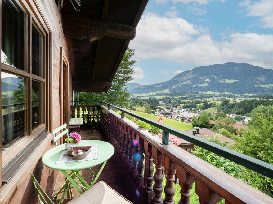 The panoramic view of the village and the surrounding mountain scenery promises holiday enjoyment.
