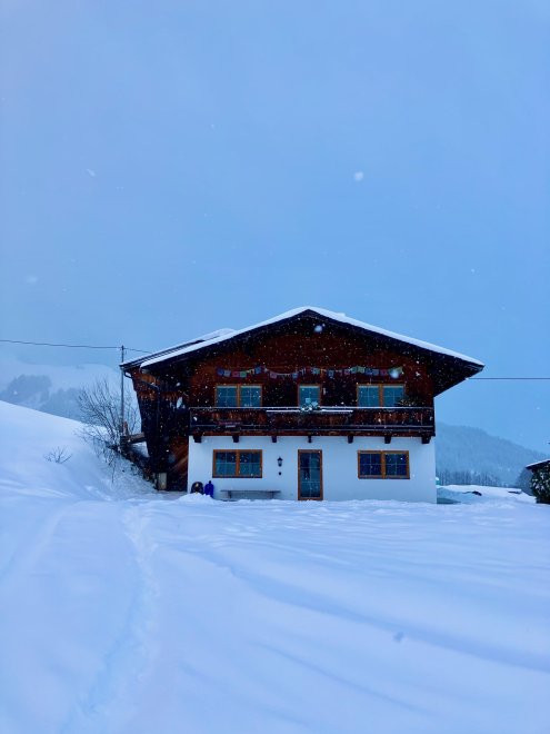 organic mountain farm in a wonderful location at 1007m! 4km from the centre of Fieberbrunn. In winter all-wheel drive/chain is required. Magnificent views of the Kitzbüheler Horn, Wilder Kaiser, Loferer & Leoganger Steinberge. The ski area Saalbach-Fieberbrunn is 15 minutes by car. Ideal for hiking, relaxing, ski touring and mountain biking. Cosy bright apartment with wonderful views of the mountains and direct access to the garden. Barbecue facilities. Spacious eat-in kitchen, bathroom with shower and bathtub. Two bedrooms. Cellar with ski stand. Underfloor heating. No television on purpose - enjoy the peace and quiet and the beautiful view! We also deliberately do without a capsule coffee machine to avoid garbage. There is a French press and an Italian espresso machine in the kitchen.