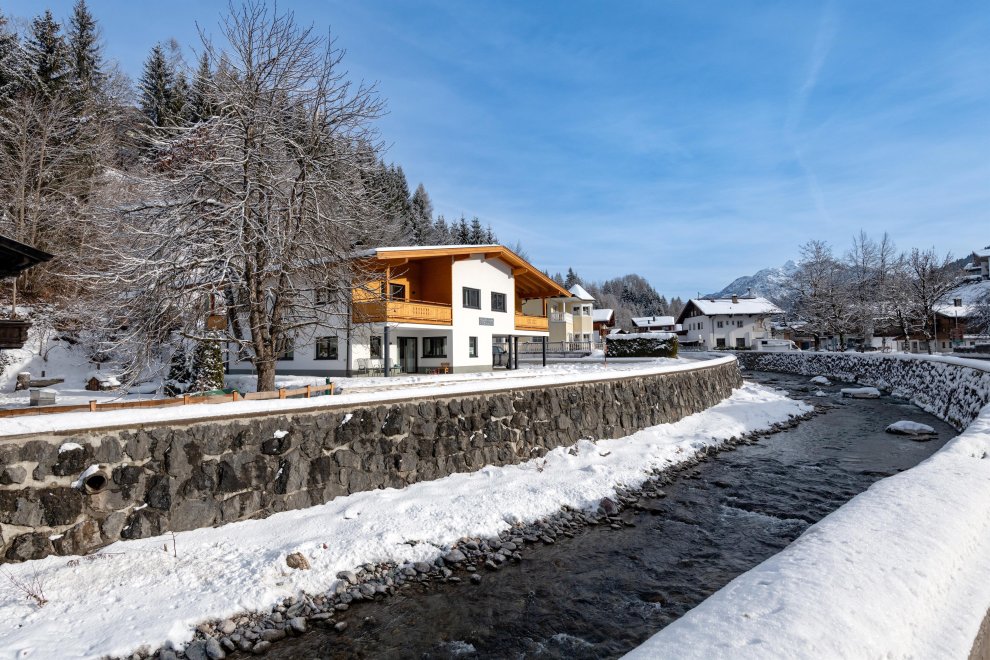 Directly opposite the community center Fieberbrunn; coming from St. Johann turn left over the bridge