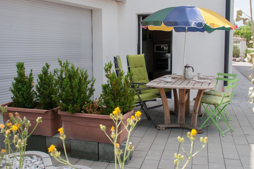 separate bedroom/s: 1, dishes available, wheelchair accessible room/apt., island kitchen, open foot-end of bed, hairdryer, no carpet, towels available, TV, oven, WiFi, garden furniture, dining room, barrier free according to DIN, closet, separate kitchen, kettle, electric stove, vent hood, kitchen utensils, bed linen available, dishwasher
