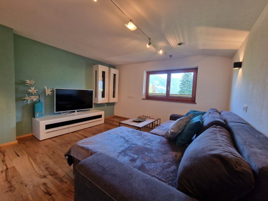 Living area with pull-out couch & Flat-TV with cable