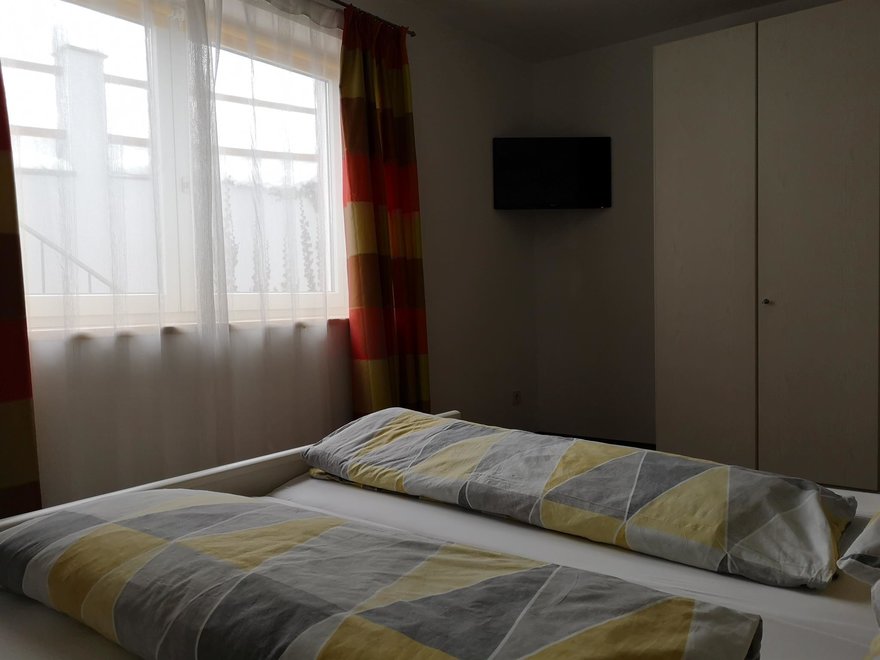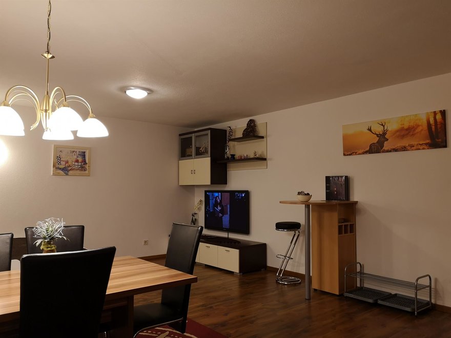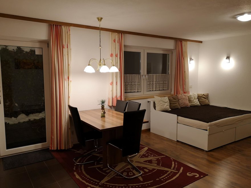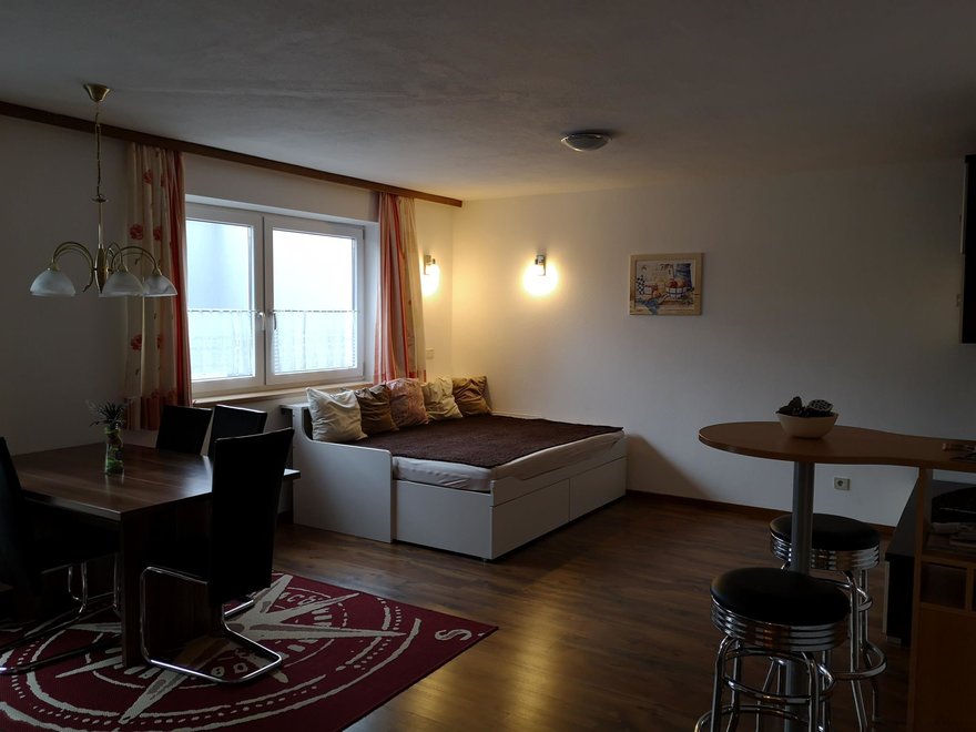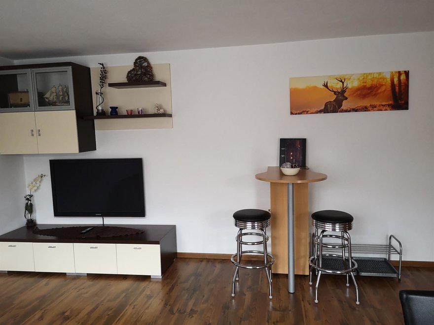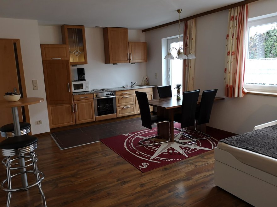 This new appartement offers you enough place for relaxation with a bedroom and a broadminded kitchen-living room with big folding couch. The bathroom is fitted out with a wellness shower and a toilet. The fully fitted out kitchen with refrigerator (incl. freezing compartment), microwave, E cooker, forecastle tube and coffee maker leaves no wishes open, you can relax also on your own terrace with garden pieces of furniture and grill.