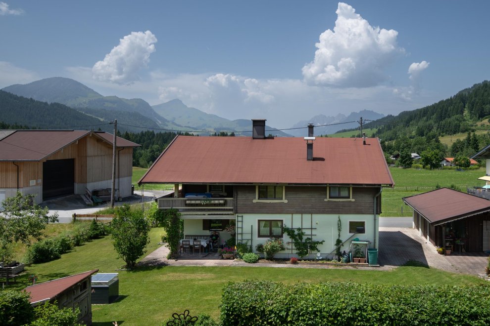 Coming from St. Johann, turn right at the first bus-stop after the sign-post "Hochfilzen", the 4th house on the left hand side (Feistenau No. 24!).