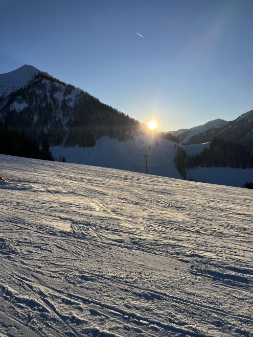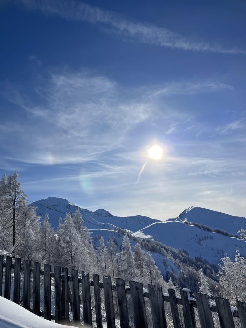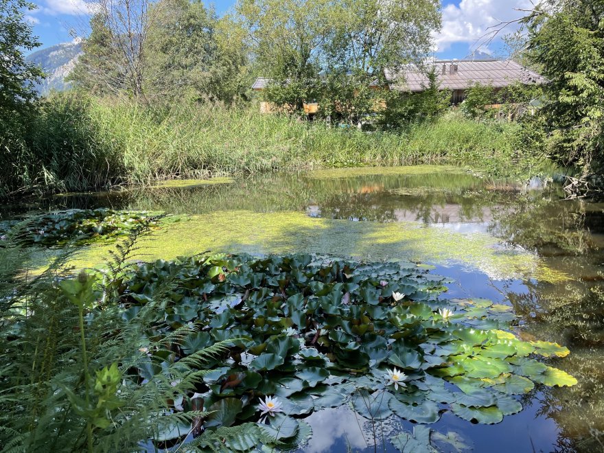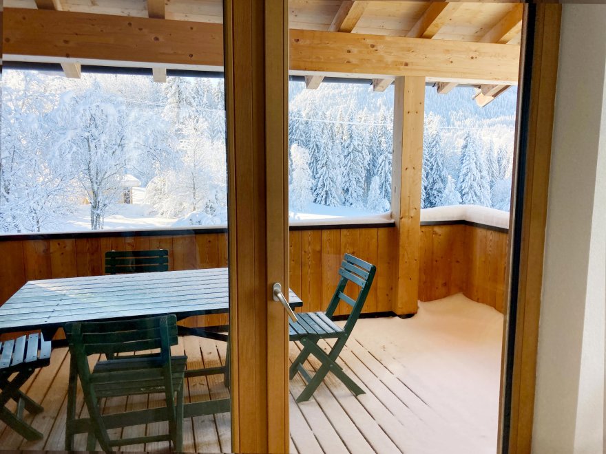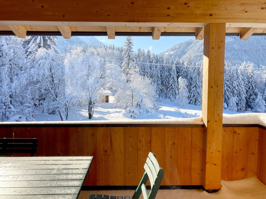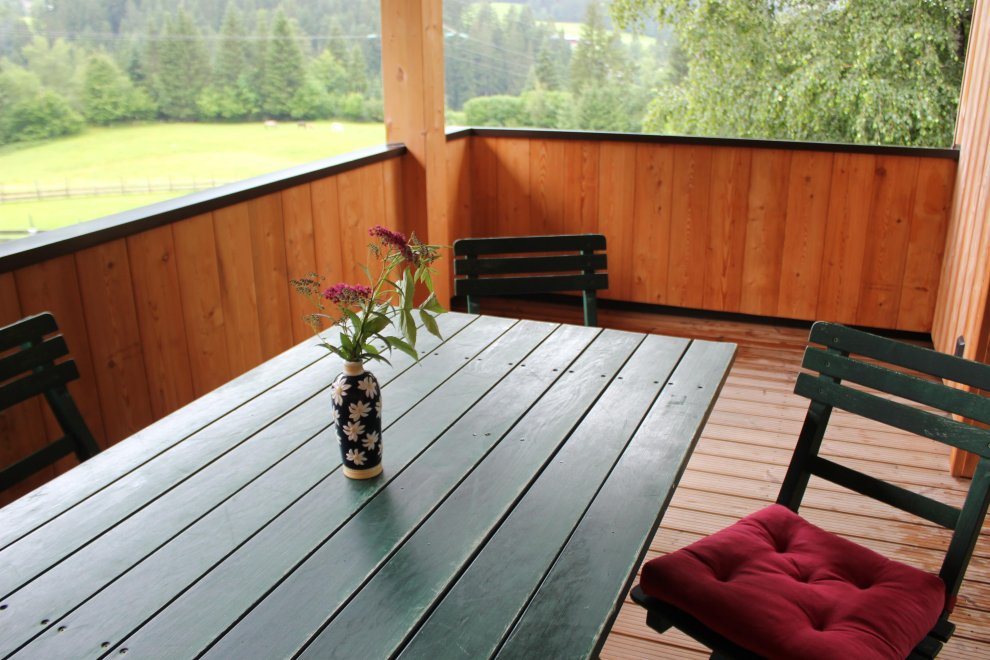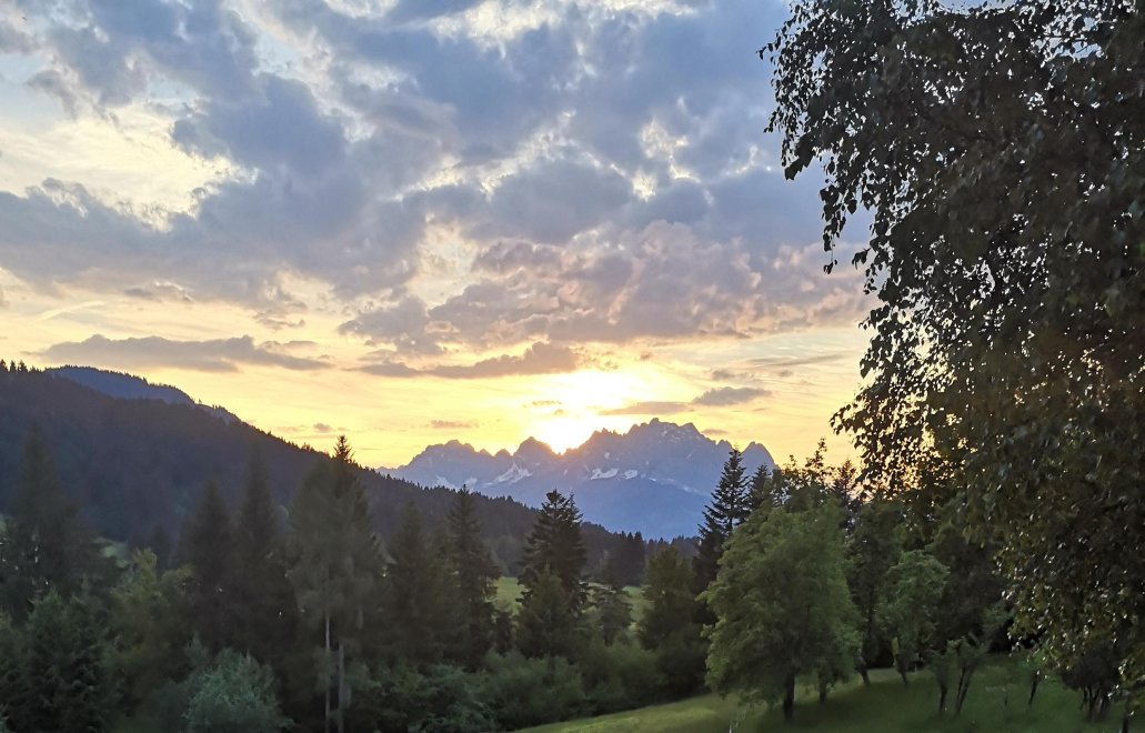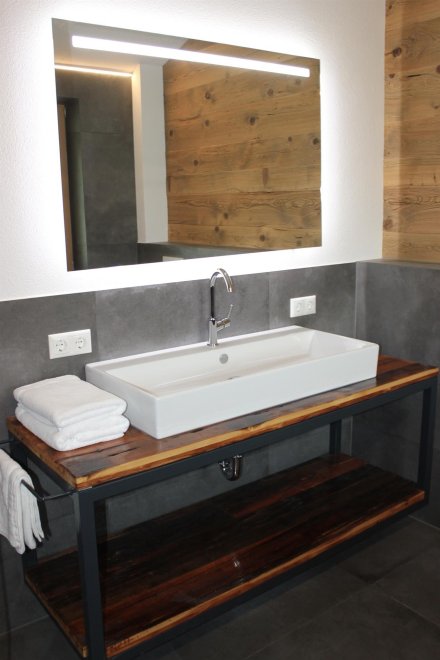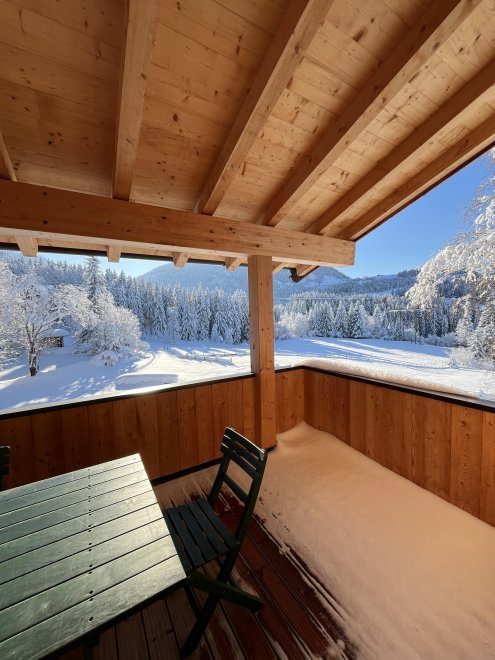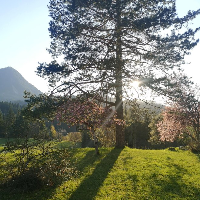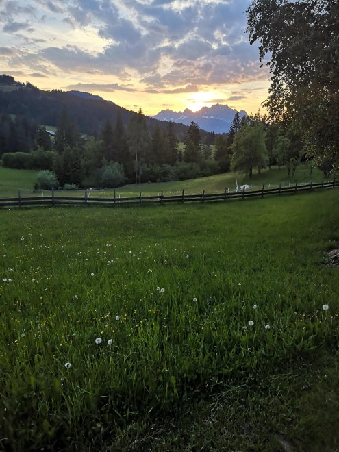 A peaceful hideaway surrounded by nature. The estate “Reitl” is situated on a plateau above the village of Fieberbrunn not far from the “Lauchsee” lake. The newly constructed almost 100 square meters of living space with large windows and a spacious loggia allow a fantastically beautiful view: forests and grasslands encompassed by the magnificent Tirolian mountains. Sheep and horses graze on our meadows, wild ducks bathe in the pond and deer come by as the sun sets.