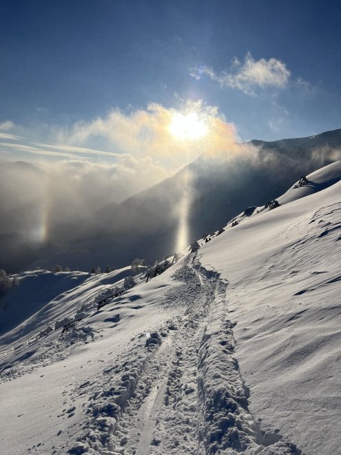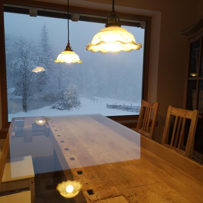 In the wintertime the fields around the remise are covered in a thick layer of snow. Children are able to play, toboggan or build a snowman undisturbedly. The cross-country ski tracks as well as a winter hiking trail are very close to the accommodation.