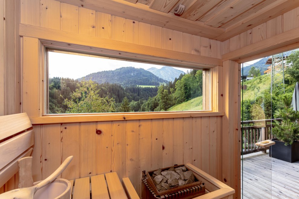 With 76 m² has space for 2-4 people. The highlight: sunterrace with private outdoor sauna and mountainview.