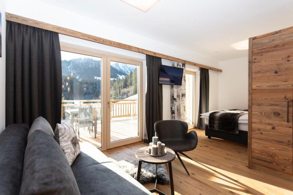 With 50 m² has space for 2-4 people. The highlight: sunterrace with private outdoor sauna and mountainview.