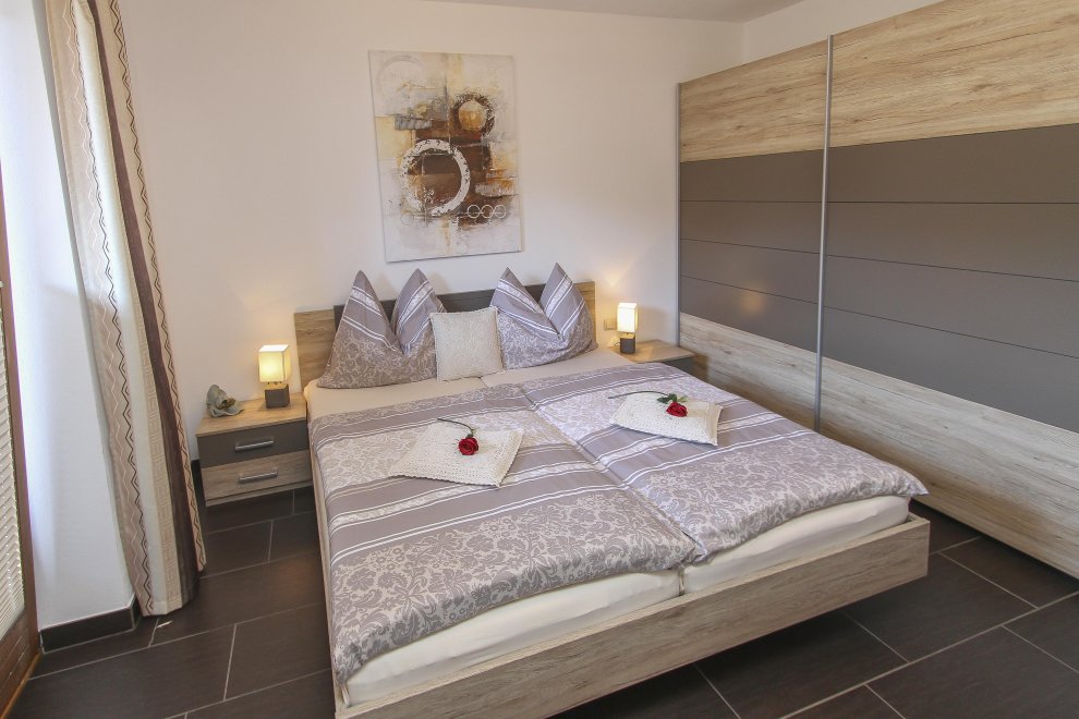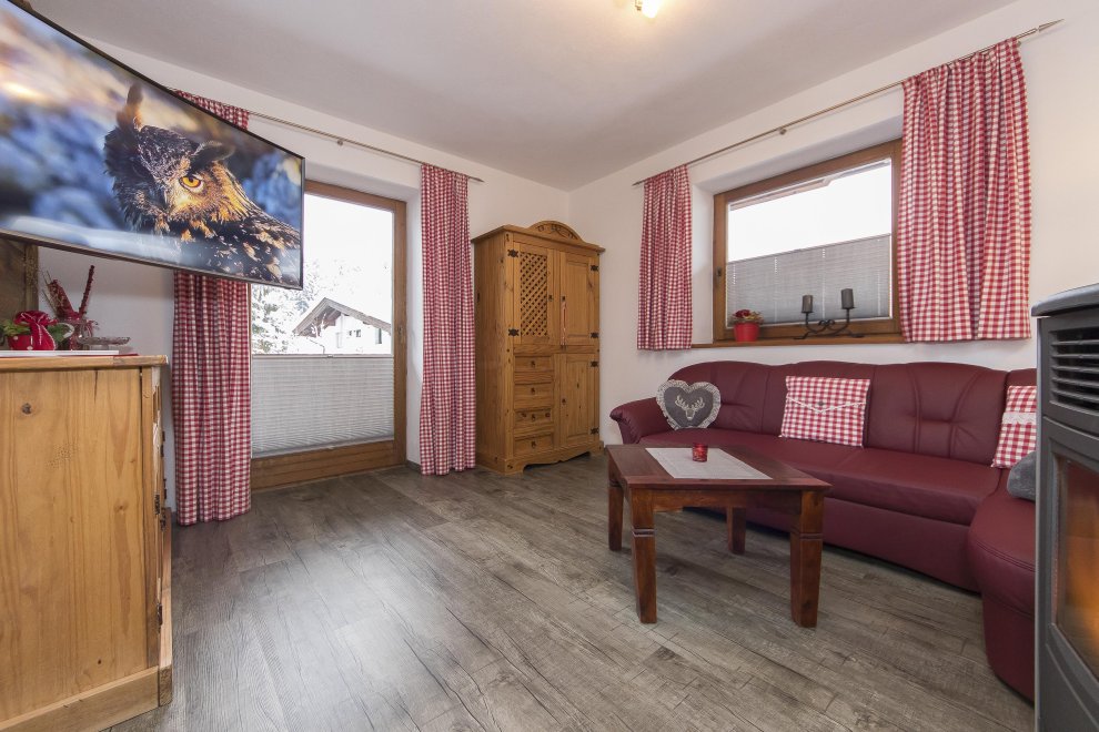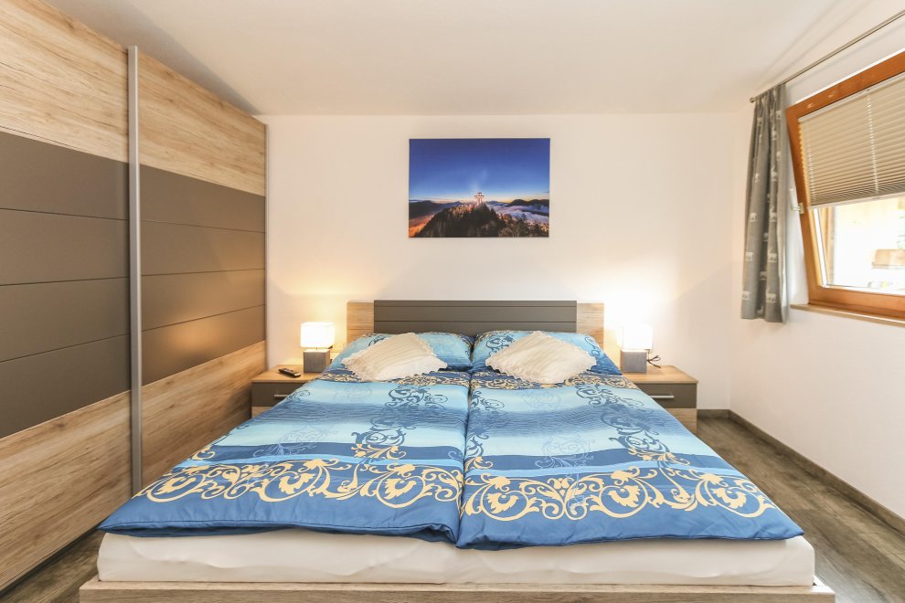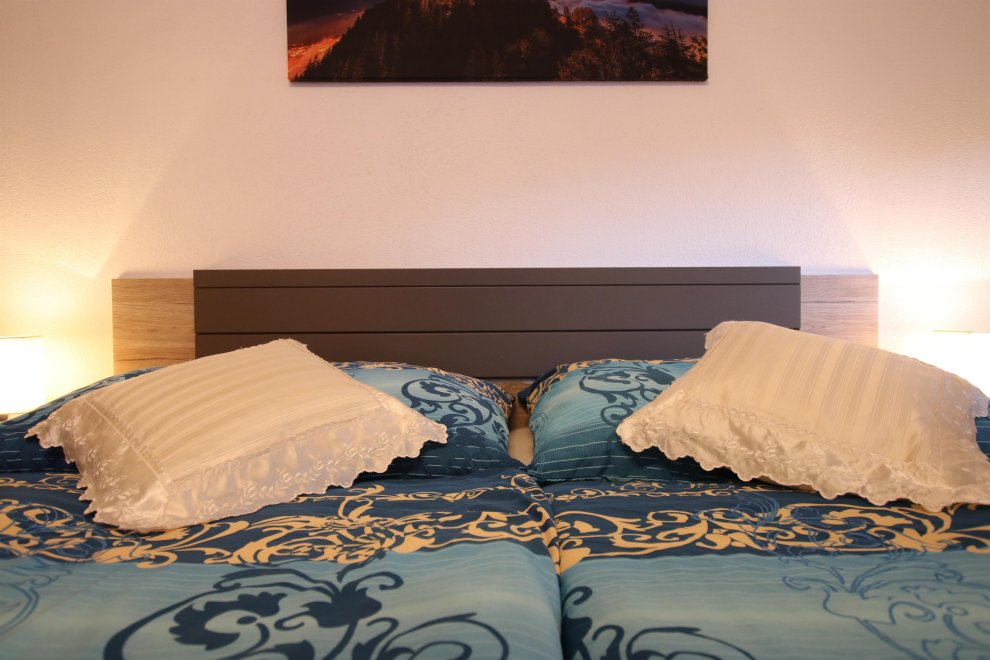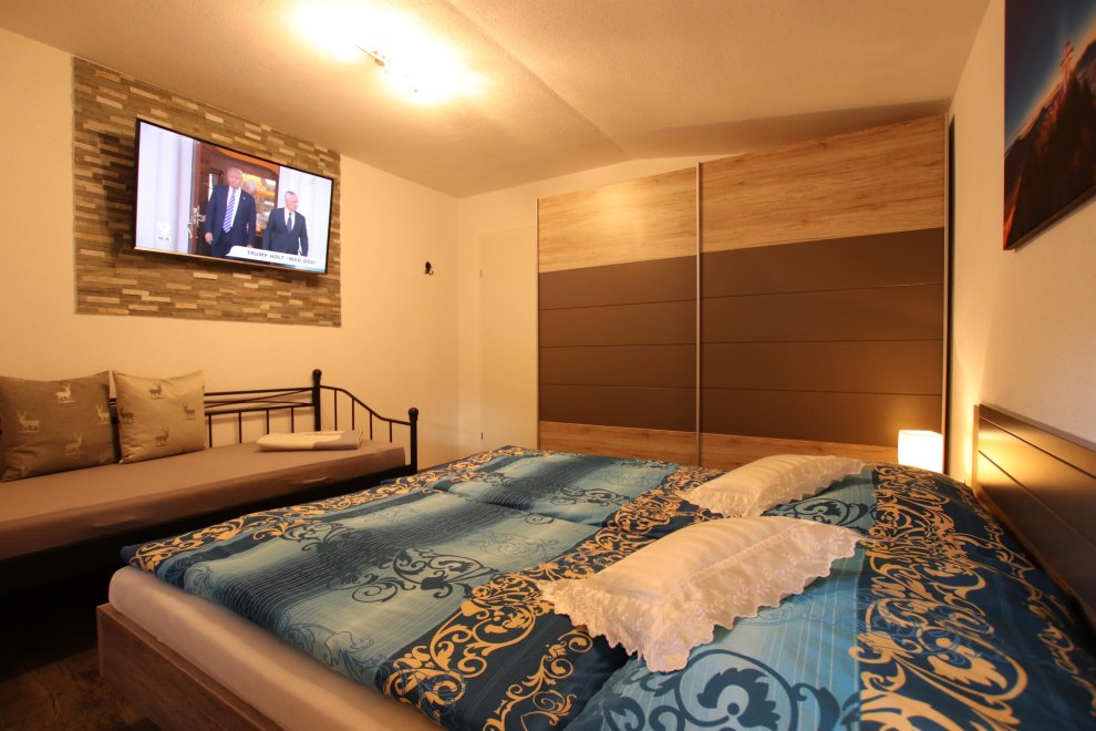 New furnished holiday apartment with 2 bedrooms, living room with pull-out couch for 2 people and warming stove with view window, kitchen-living room with dishwasher, oven, big fridge and specially freezer compartment, big bath, toilet, TV, WLAN, radio, big sunny balcony. Total area 65 m ².