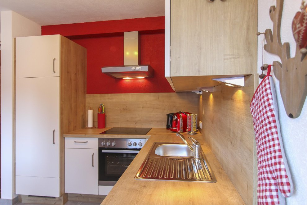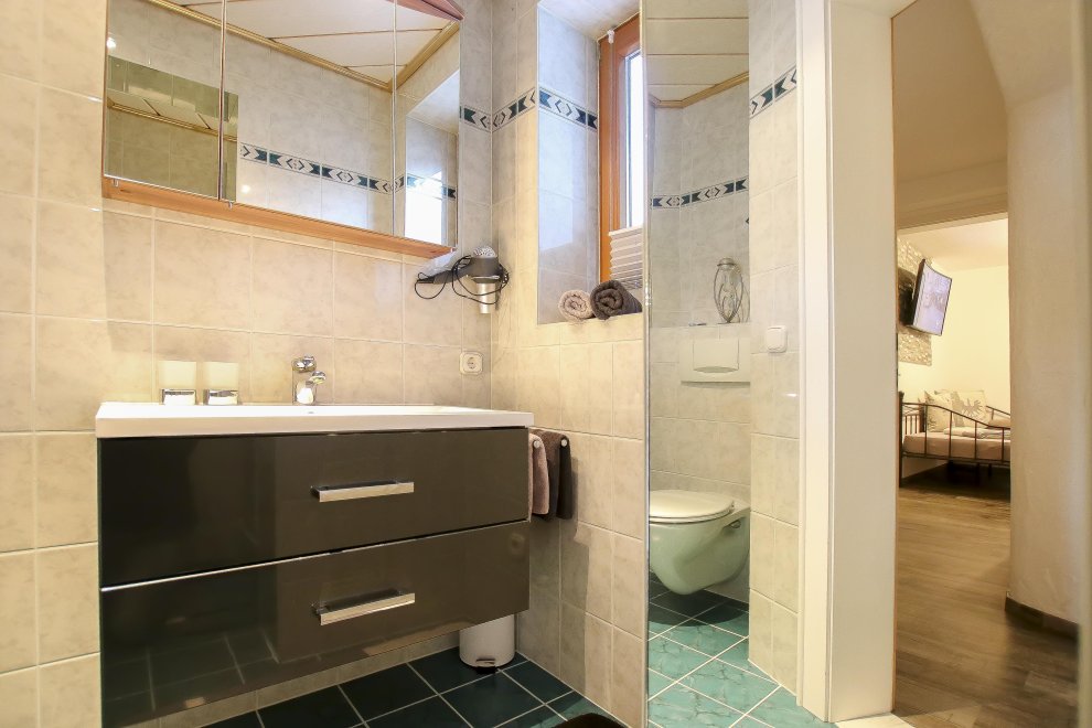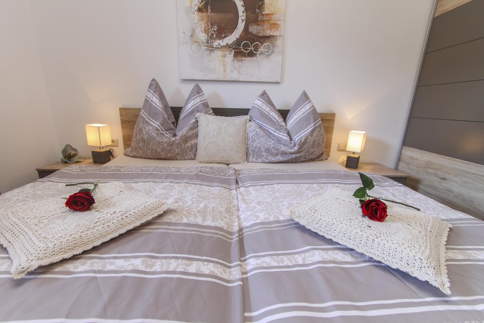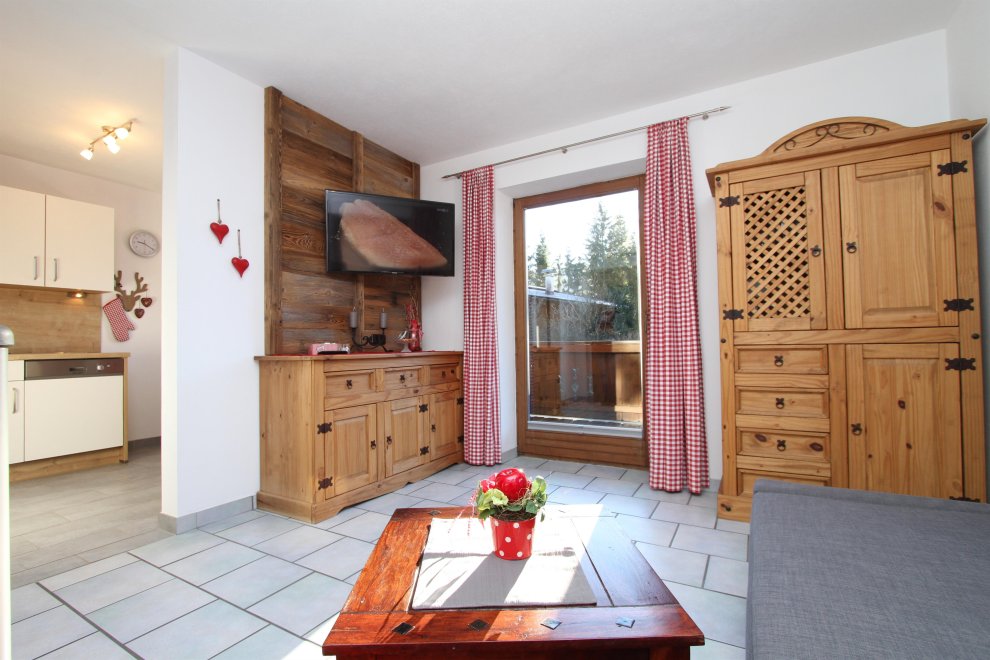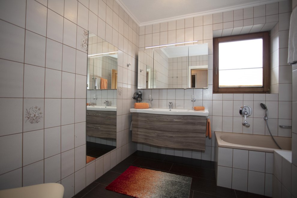 New furnished holiday apartment with 2 bedrooms, living room with pull-out couch for 2 people and warming stove with view window, kitchen-living room with dishwasher, oven, big fridge and specially freezer compartment, big bath, toilet, TV, WLAN, radio, big sunny balcony. Total area 65 m ².