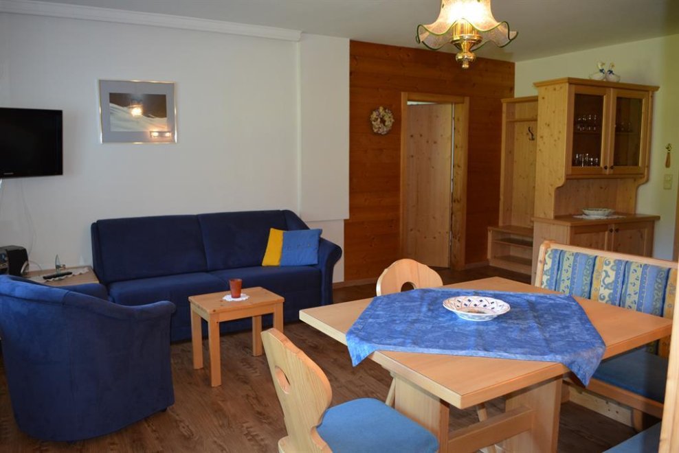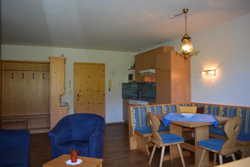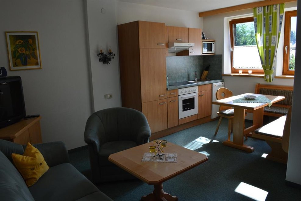 Apartment I on the groundfloor (eastfacing): livingroom with cable-TV, leather-couch, comfortable tyrolean seating facility, kitchenette, bedroom (doublebed and extra-bed possible), bathroom (shower/WC), apartment is completly restored, exit to the garden, app. 42 m².