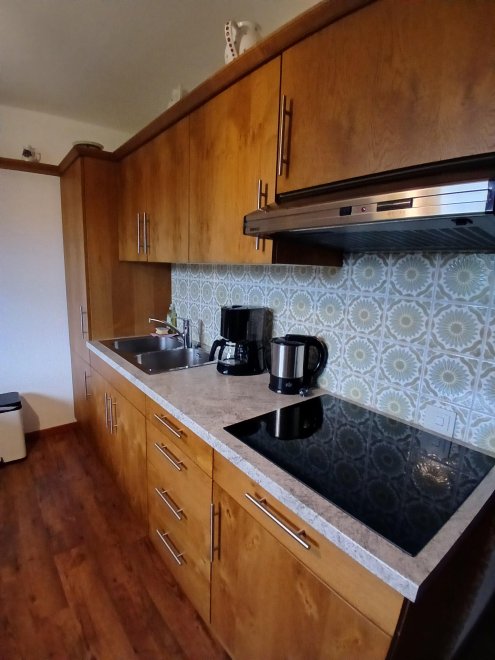 balcony, wooden or parquet floor, kitchen utensils, TV, no carpet, essentials (towels, bed linen, soap, toilet tissue), hairdryer, separate bedroom/living room, radio, island kitchen, dish sink, rustic furniture, dishes available, kitchen and table linen, coffeemaker, non-smoking room/apt., heater, towels available, vent hood, separate bedroom/s: 2, socket close to bed, electric stove, no pets allowed, refrigerator, satellite TV, refrigerators available, bed linen available, oven, open plan kitchen/living room, smoke detector, kitchen, kettle, balcony (in some rooms)
