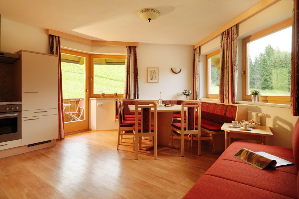 Our family-owned apartmenthouse is situated in a sunny location with a view to the impressive mountain scenery of the Pillerseetal and the slopes of the Skicircus. The village center and the mountain railroad is about 15 minutes walk away.