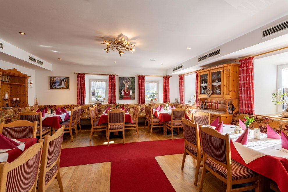 Further benefits for our guests: * Restaurant à la carte with regional cuisine, warm meals served all day, salad buffet. * Half board inclusive: breakfast + 3-course dinner with choice of menu and daily fresh salad buffet. * Free WIFI Internet access throughout the house. * Big storage room for ski equipment or mountain bikes. * TV lounge in our cozy “Stüberl”. * Free use of cross-country ski runs and bus services (with the Guestcard) in Pillerseetal. Pets allowed upon request (extra charge).