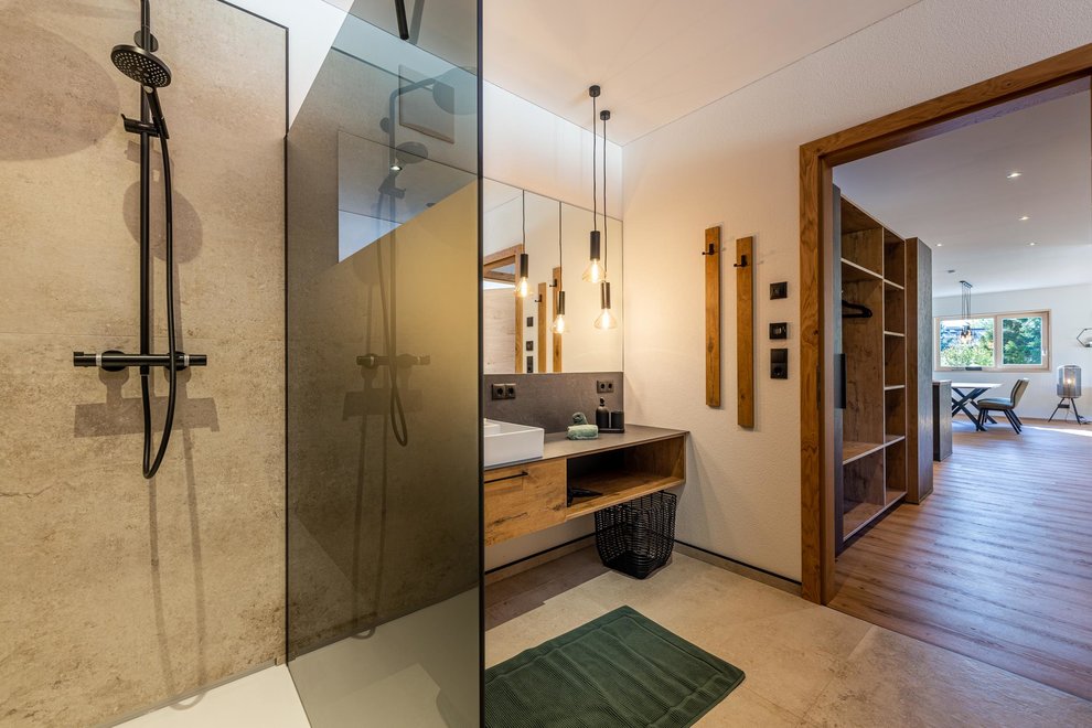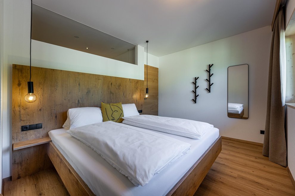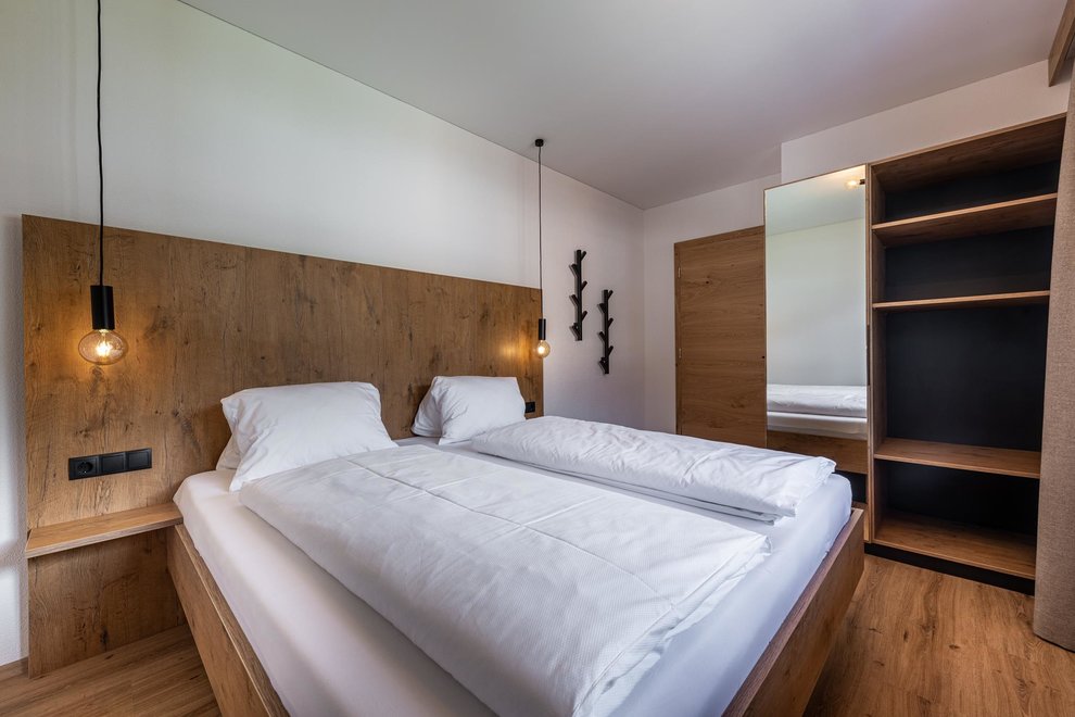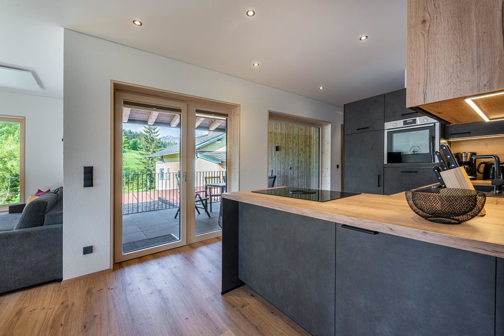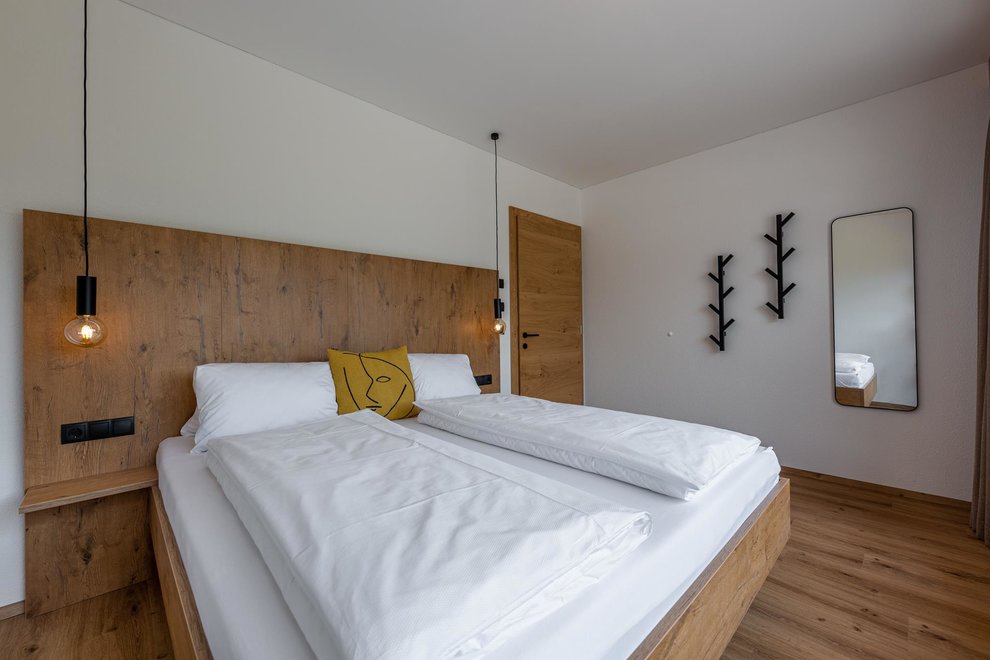 The newly built building comprises a total of 4 flats. The two flats on the ground floor are permanently occupied by Stefanie's parents. Via the separate entrance you reach the 2 spacious, light-flooded holiday flats berg.glück and wiesen.glück on the upper floor via a wide staircase. Both flats have 75 square metres and are equipped with extra large windows for light-flooded rooms and great views. Modern, stylish and high-quality furniture conjures up pure living comfort. The Glückhoch2 offers everything you need for a pleasant stay and a perfect holiday in the Tyrolean mountains.