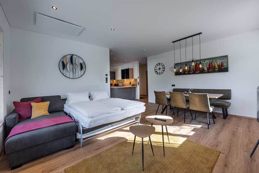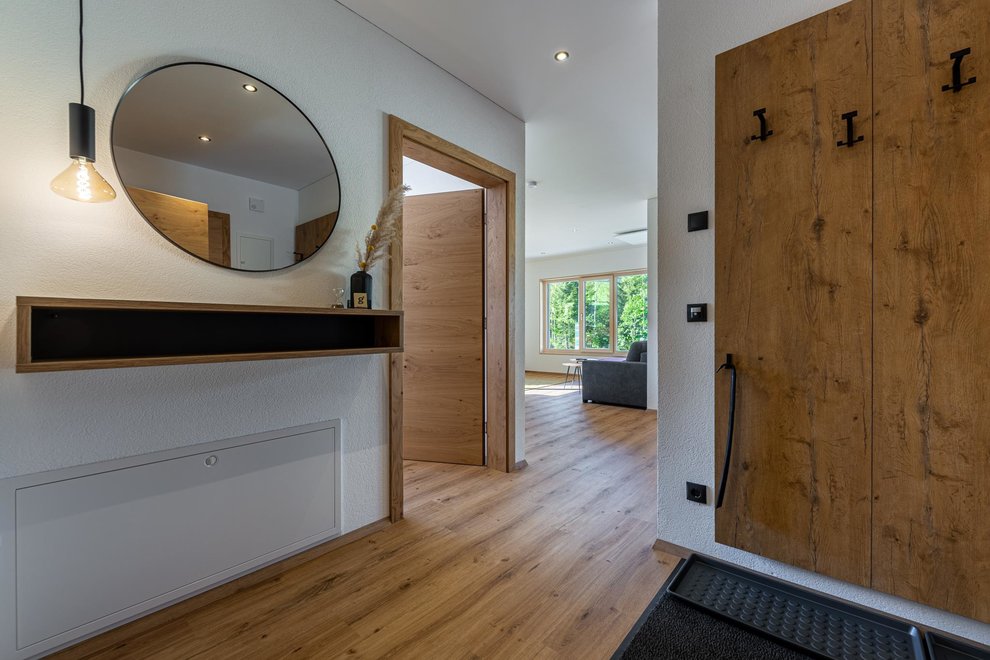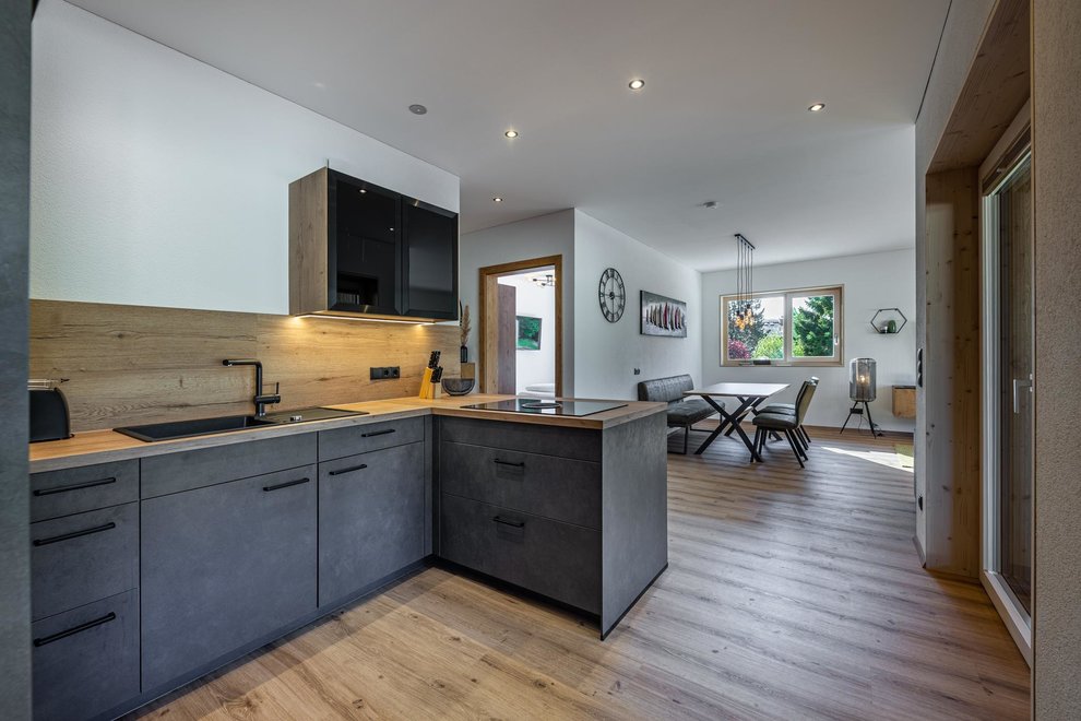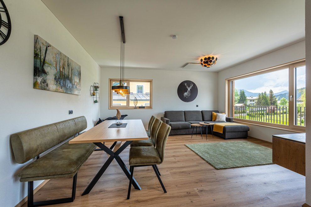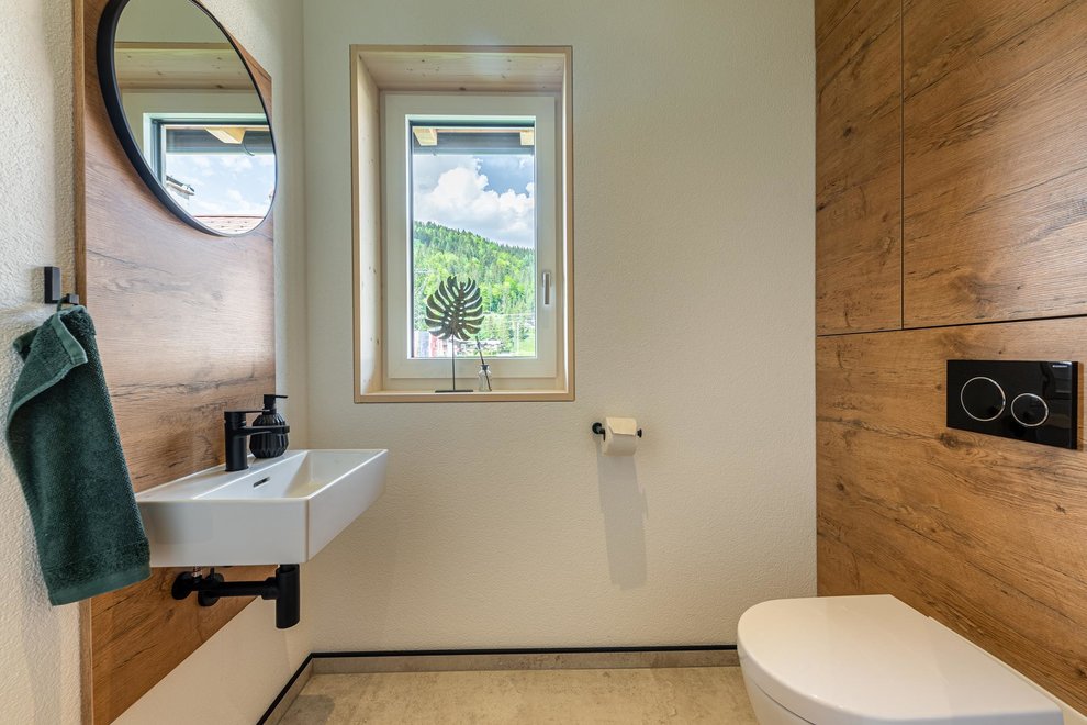 The newly built building comprises a total of 4 flats. The two flats on the ground floor are permanently occupied by Stefanie's parents. Via the separate entrance you reach the 2 spacious, light-flooded holiday flats berg.glück and wiesen.glück on the upper floor via a wide staircase. Both flats have 75 square metres and are equipped with extra large windows for light-flooded rooms and great views. Modern, stylish and high-quality furniture conjures up pure living comfort. The Glückhoch2 offers everything you need for a pleasant stay and a perfect holiday in the Tyrolean mountains.