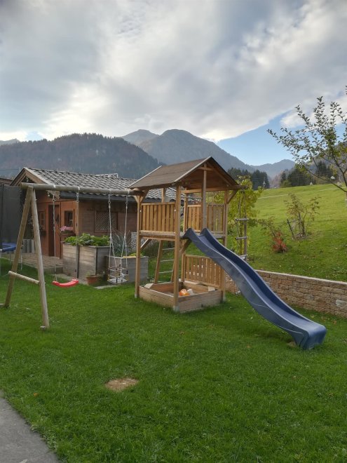 Cosy and comfortable private boarding house, 10 beds/5 rooms, with familiar atmosphere in a very sunny position. Cross-country track near to the house, large terrace and lawn. 7 minutes to walk to the skibus-stop and to the public swimming pool Aubad.