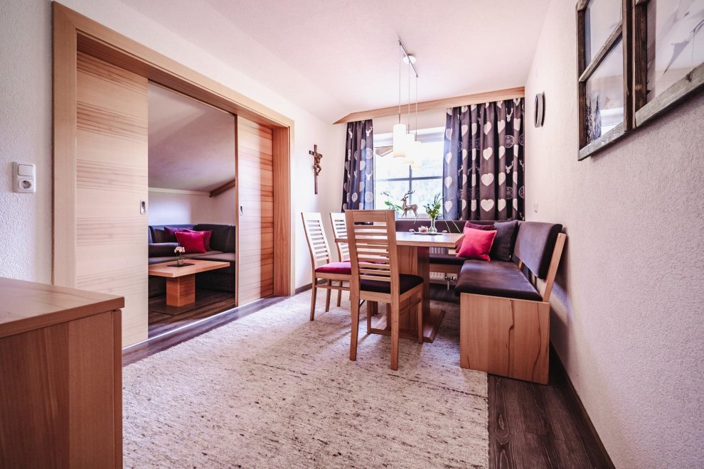 Experience an unforgettable stay in this newly renovated vacation apartment in traditional Tyrolean style, ideal for 2 people. With a spacious bed-sitting room including pull-out couch, a cozy double bedroom, a fully equipped eat-in kitchen with dishwasher, an additional sofa bed, a modern shower/WC, satellite TV, radio and an inviting terrace. The apartment offers a living space of approx. 36 m² and is located at ground level on the sunny south side.