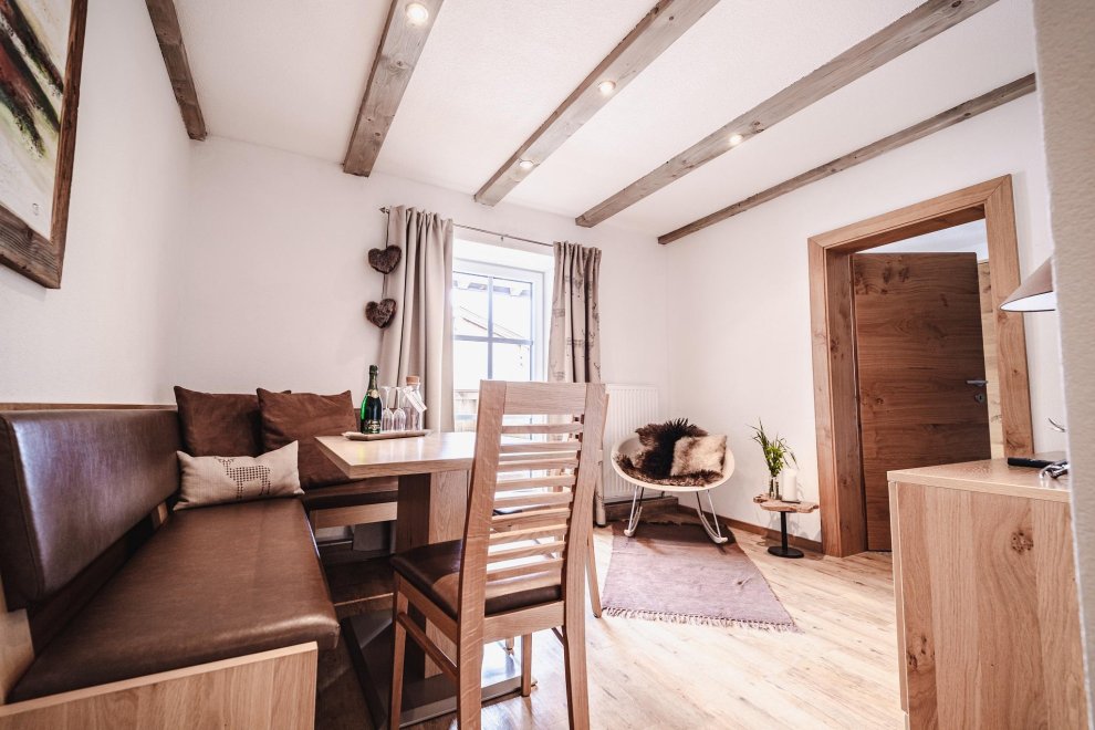 Enjoy a relaxing stay in our newly renovated apartment in charming Tyrolean style. The apartment is perfect for two people, with an eat-in kitchen including dishwasher, a cozy double bedroom, a comfortable couch, a modern shower / WC, satellite TV, radio and an inviting terrace, all on a ground floor 40 m² living space.