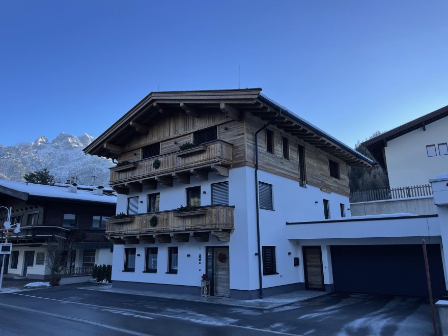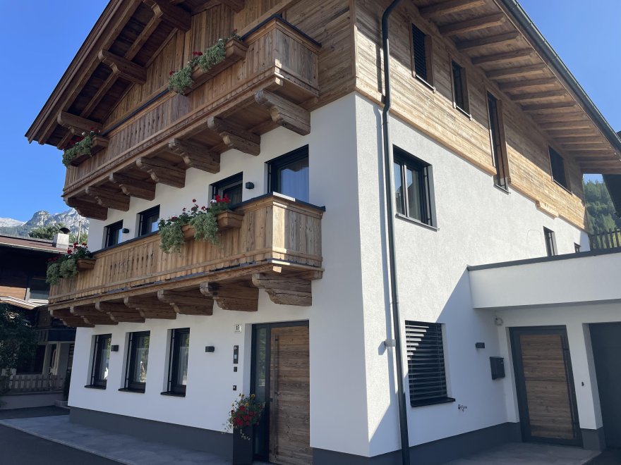 Since 1960 guests are being host in „Haus Lackner“. In 2022 the former bed and breakfast hospitality was transformed to a new and modern building with alpine architecture from us, a young local couple. We are very happy and glad to continue the tradition of the house in a family way and to welcome our guests with passion and warmth in the "Apartment Steinplatte".