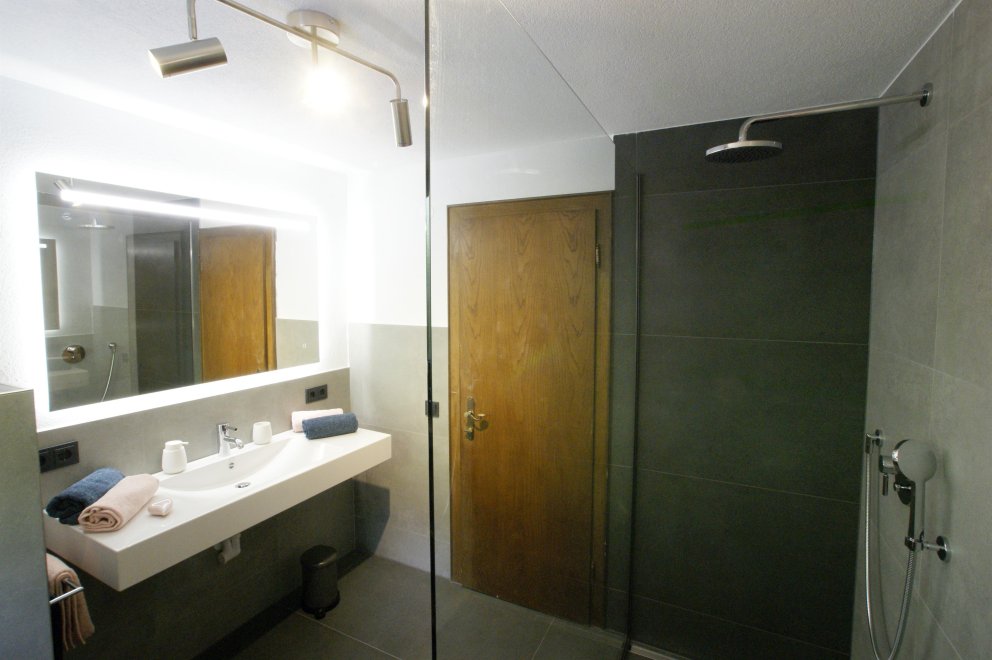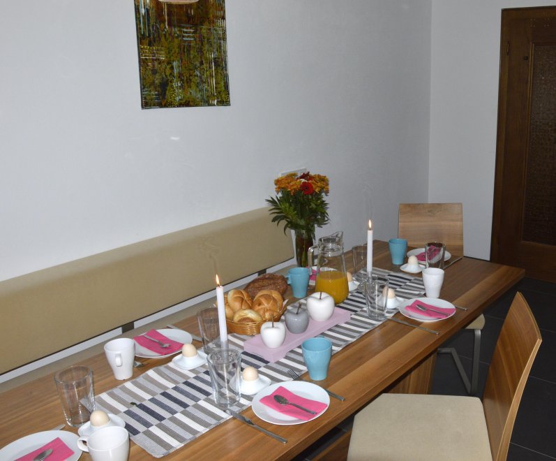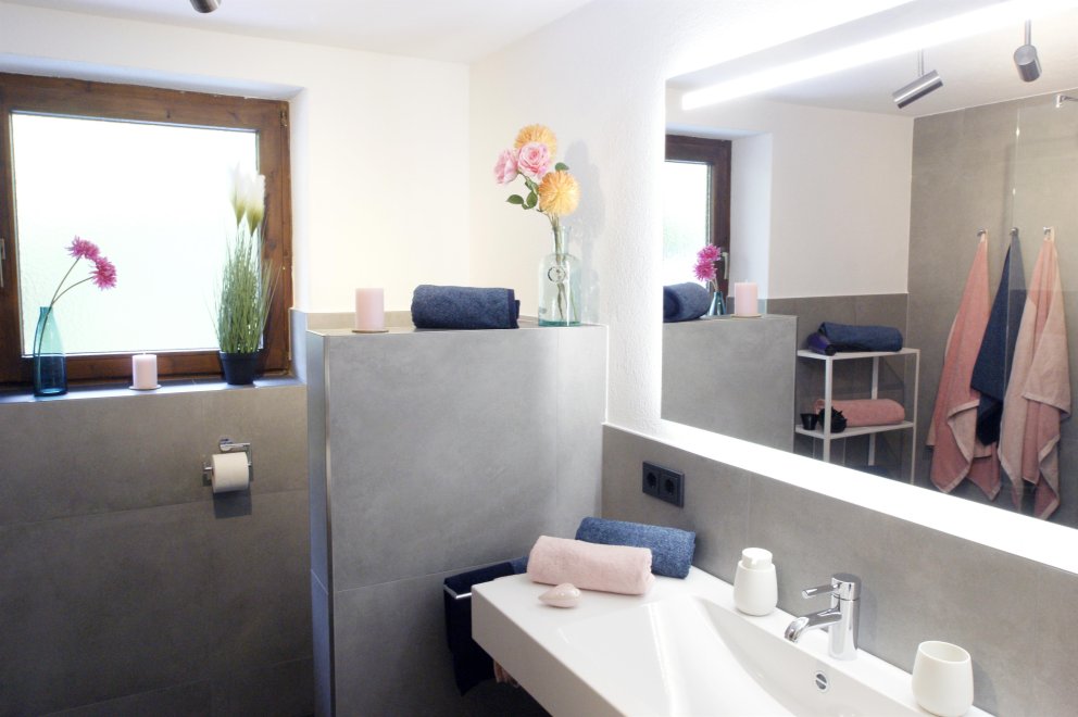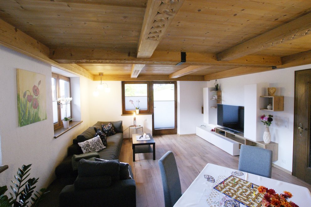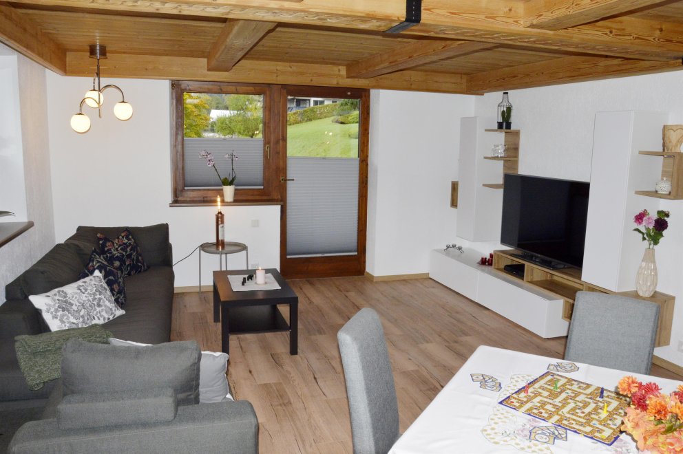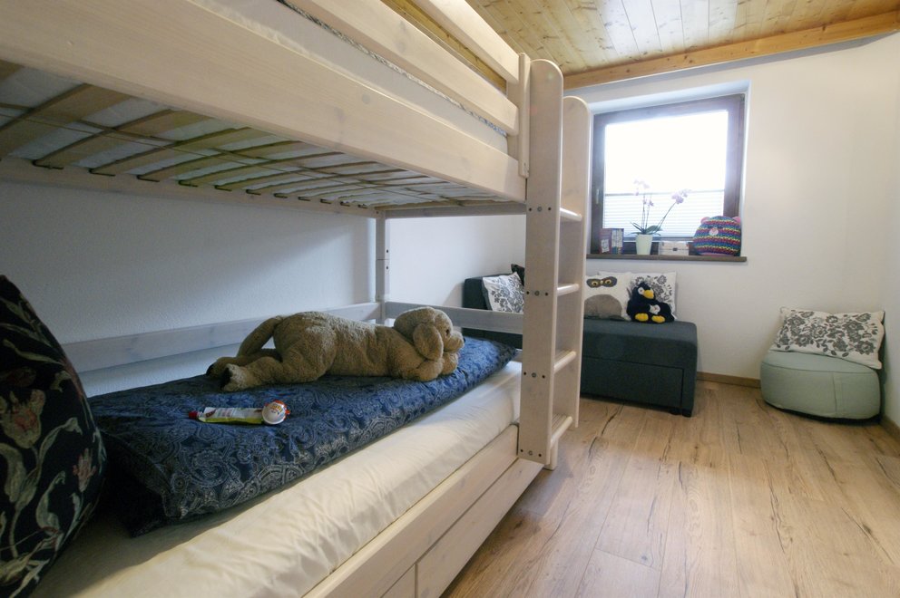 We offer you a completely renovated holiday flat. Living room with tiled stove and a pull-out bed; new kitchen with generous seating set; children's room with a bunk bed and a pull-out bed; parents' bedroom with double bed in comfort height; bathroom with shower, WC and washbasin; separate WC; storage room; cellar. Floors: tile and cork floors in the living room and bedrooms.