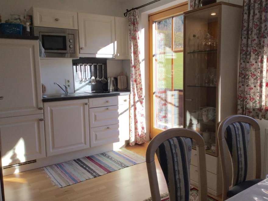 Cozy, 55 square meter apartment on the 2nd floor with balcony and a beautiful view of the Loferer mountains and the Steinplatte. The apartment offers 2 seperate sleeping rooms, full equiped kitchen, sofa and TV.