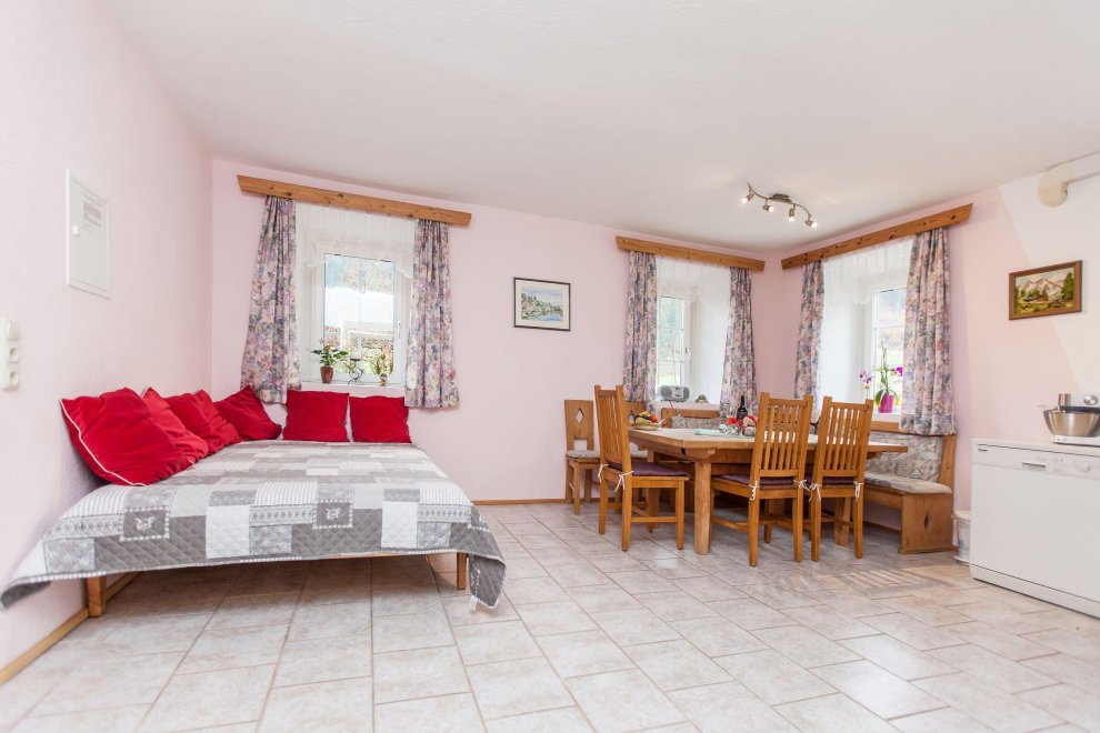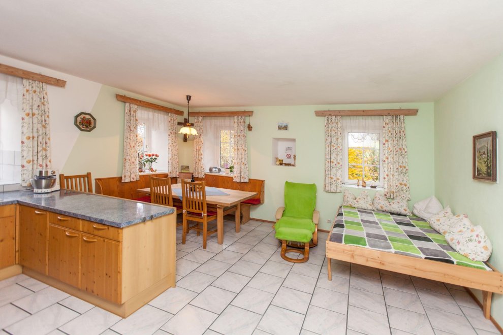 Arrival from 4.00 pm, departure till 10.00 am. Of St. Johann i.T. Coming from Fieberbrunn (district Rosenegg) left towards St. Jakob iH / St. Ulrich A.P. turn. Approx. 700 m from the town center next to the main road Pillersee you see on the right side on a hill, a large farmhouse with 3 balconies, green shutters and attached terrace.