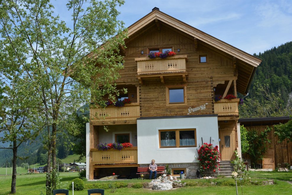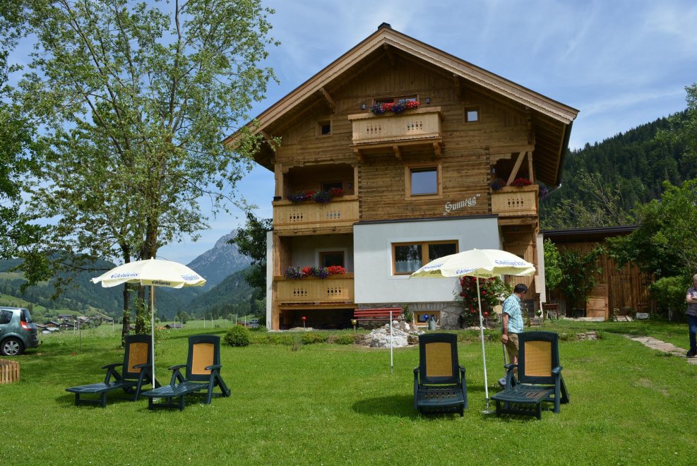 The apartment SUNNEGG is a 3 room flat, the apartment is in the ground floor with balcony and garden. The flat has a spacious living room with Flat Screen, couch (additional bed possibly), high grade equipped kitchen (fridge, microwave, dishwasher, oven, microwave, Ceramic hob, etc.), 1 bedroom (double bed), bathroom with shower / WC, Infrared cabin.