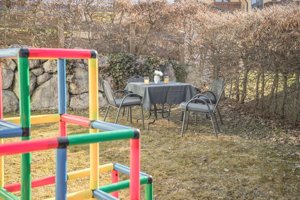 The apartment also offers two inviting, spacious balconies. From the north balcony you have a fantastic view of the Wilder Kaiser and the Leoganger Steinberge, the south balcony impresses with sunshine. A small garden with trampoline and climbing frame will delight the little ones. A parking lot directly at the house is available free of charge.Bed distribution