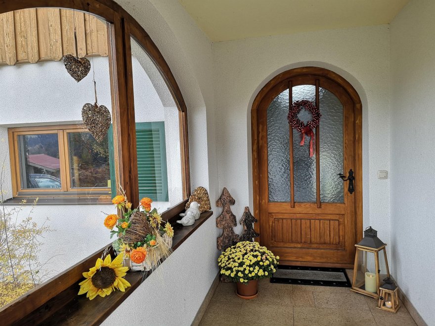 Cosy furnished apartment (private-house app. 200 m from the farmhouse), 2 bedrooms (2 doublebed-rooms , 1 x sofa single bed), kitchen with dining-table, 1 shower, 1 toilet, terrace with mountain view, Sat-TV, 84 m².