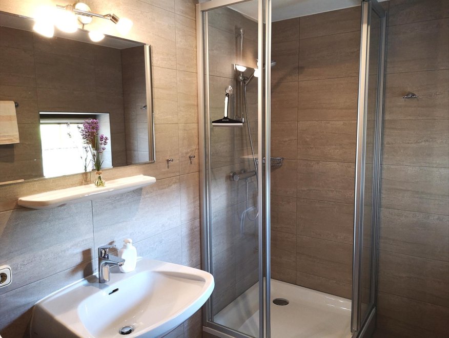 Cosy furnished apartment (private-house app. 200 m from the farmhouse), 3 bedrooms (1 x 2 doublebed-rooms , 1 x doublebed-rooms), livingroom, kitchen with dining-table, 2 shower/toilet, terrace, Sat-TV, 84 m² (+).