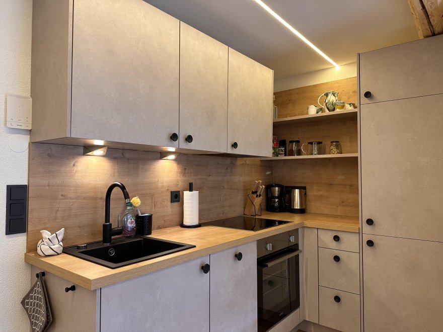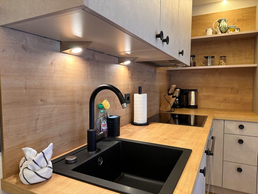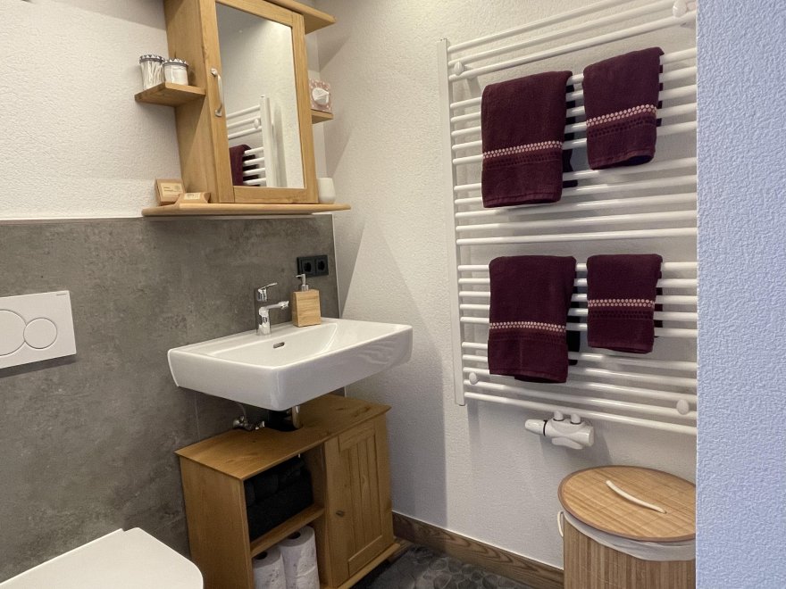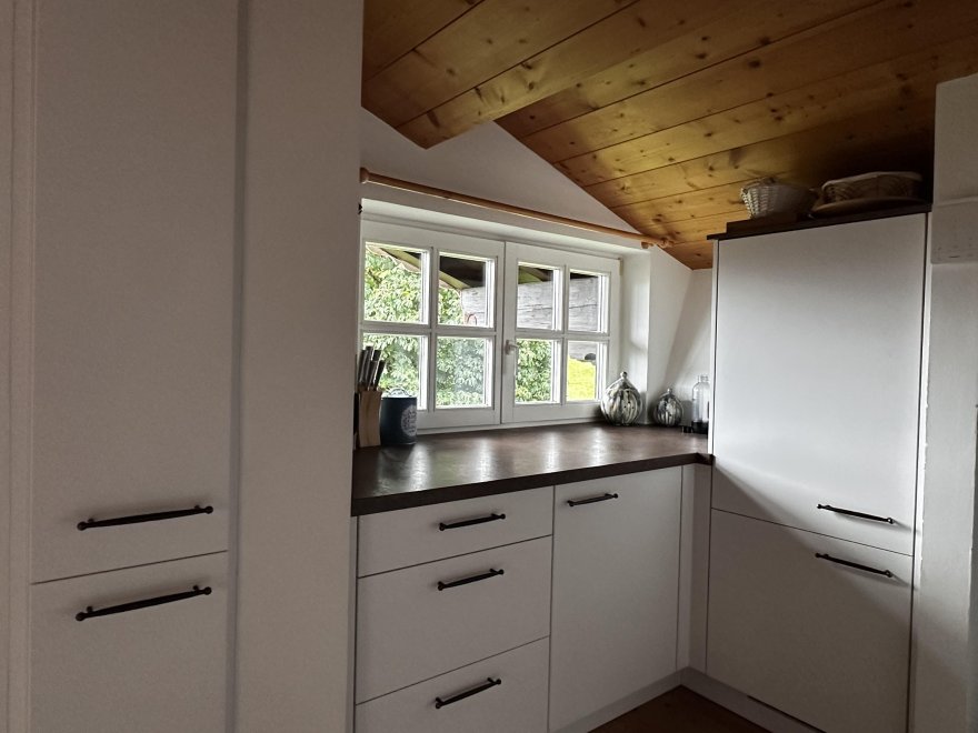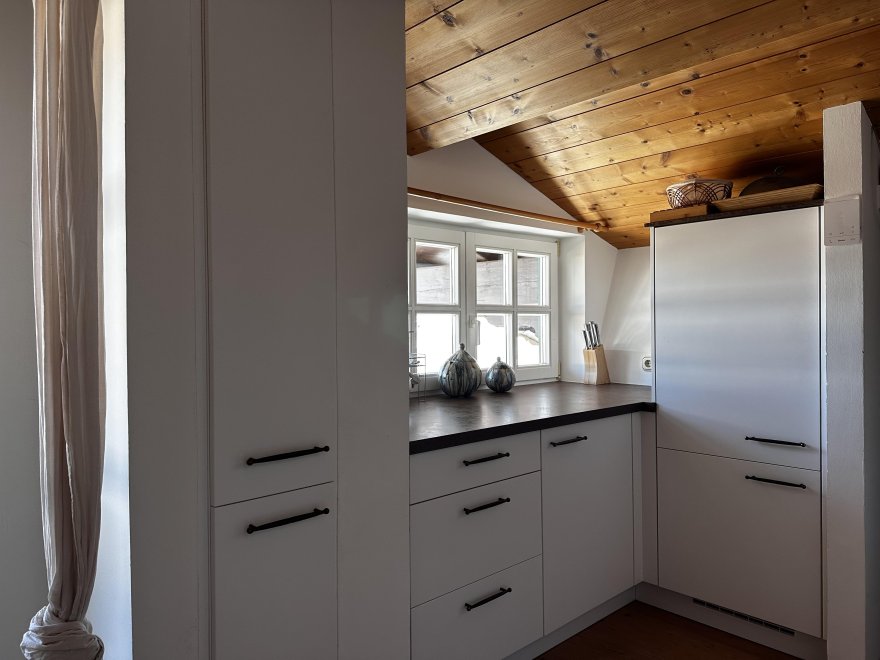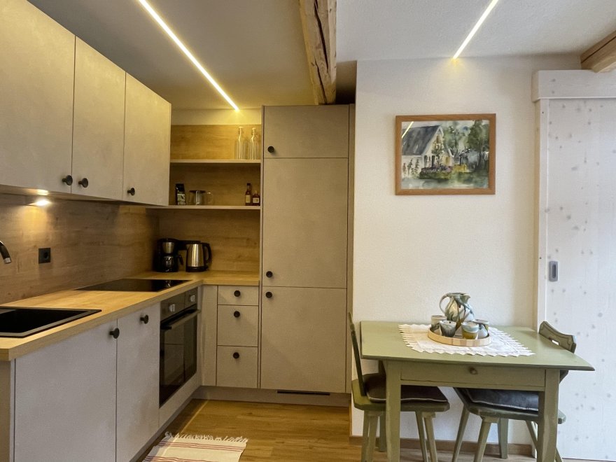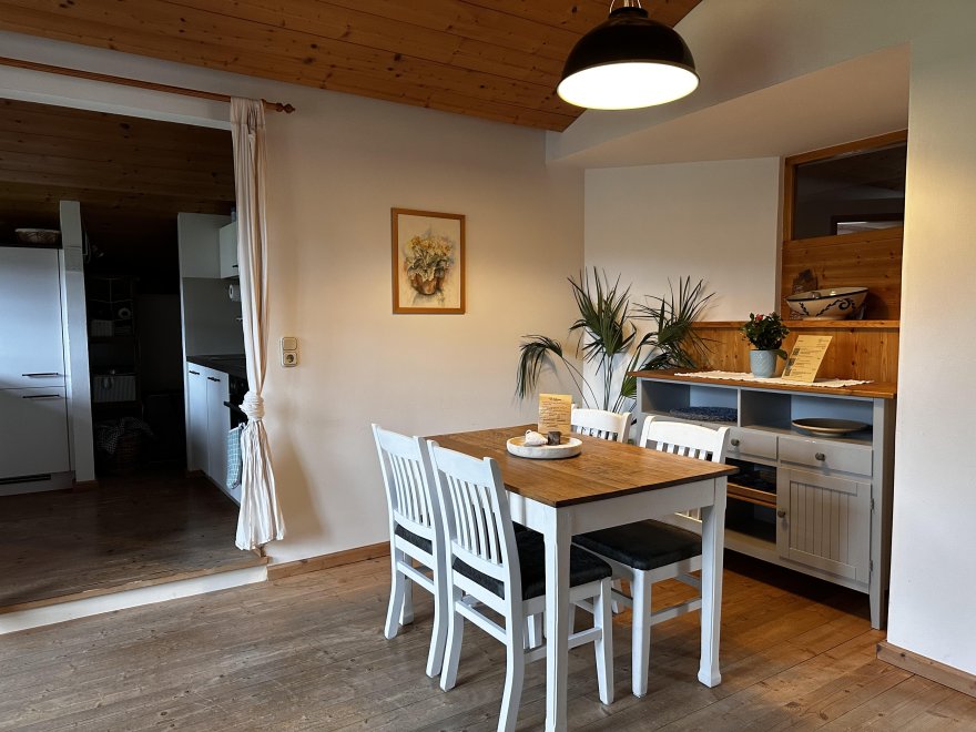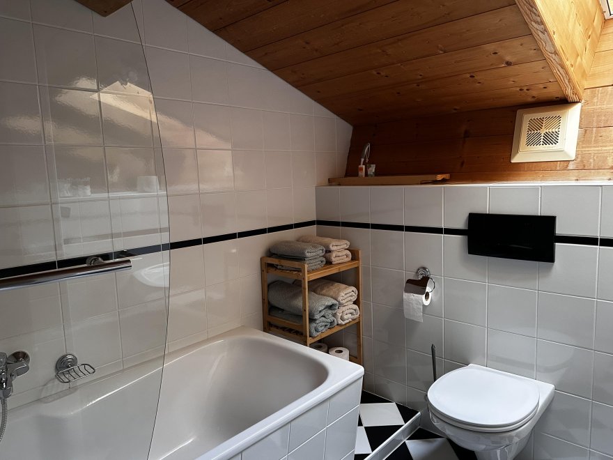 The 75m² flat is located in the attic of the farmhouse. The flat is newly furnished and has a spacious living-dining area with modern kitchen, 2 separate bedrooms and a bathroom with tub/WC, WiFi, cable TV and a balcony.