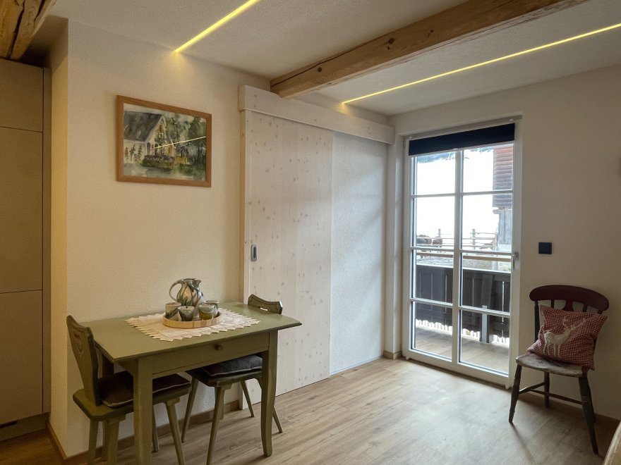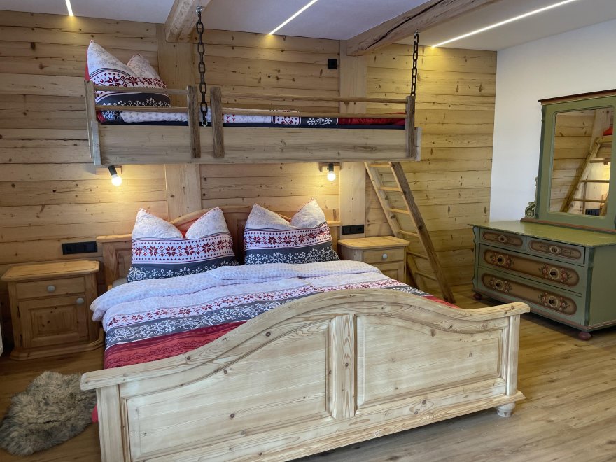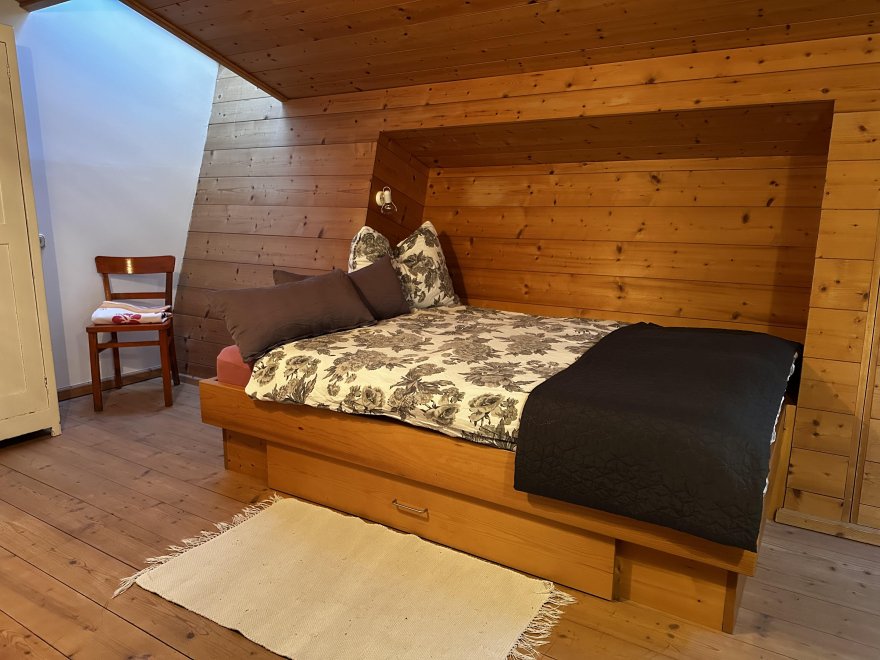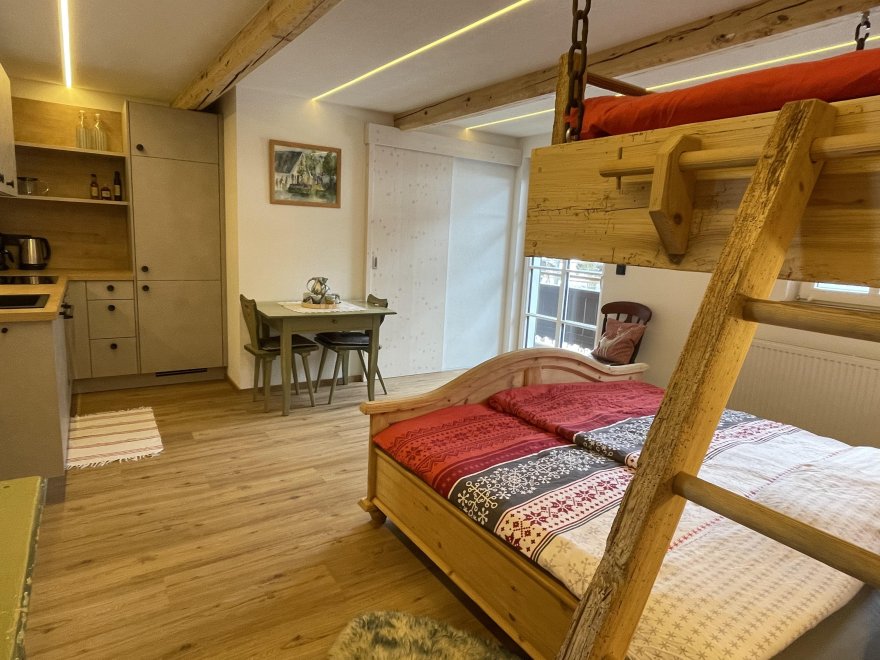 The Garçonnière consists of a living-sleeping-kitchen with separate bathroom, a double bed and an additional bunk bed and is located on the 1st floor of our newly renovated farmhouse. On the south side with balcony and view of Obingleiten.