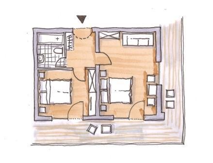 comfortable apartment for 2 - 4 peoples with 1 bedroom, combined kitchen/living-room with couchbed, dinining-table (kitchen: dish-washer, stove, coffeee-mashine),parquet ground, shower, toilet, under-floor heating, Sat TV.