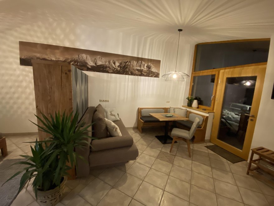Sepp‘s Apartment is a cozy, modern apartment in the extension of a house in Fieberbrunn in the PillerseeTal. The 35 m² apartment has its own entrance, a large living and sleeping area with a fully equipped kitchenette, dining area and pull-out couch, a bathroom with shower and a south-facing balcony with mountain views.
