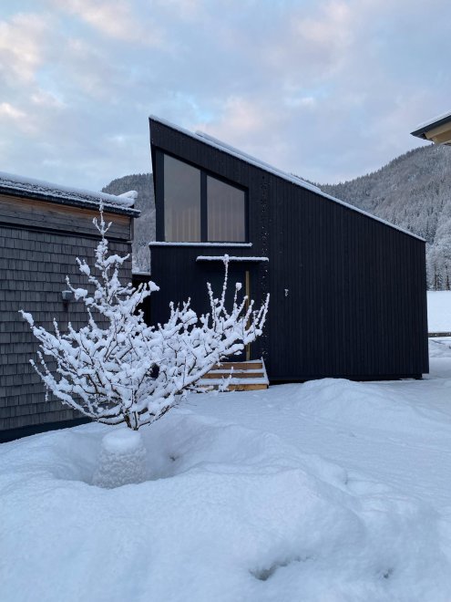 In the garden of the Stoaberg Lodge, a sauna house invites all guests for shared use. A quiet place to warm up and reflect. To ensure everyone can enjoy their personal peace, individual sauna times can be reserved.