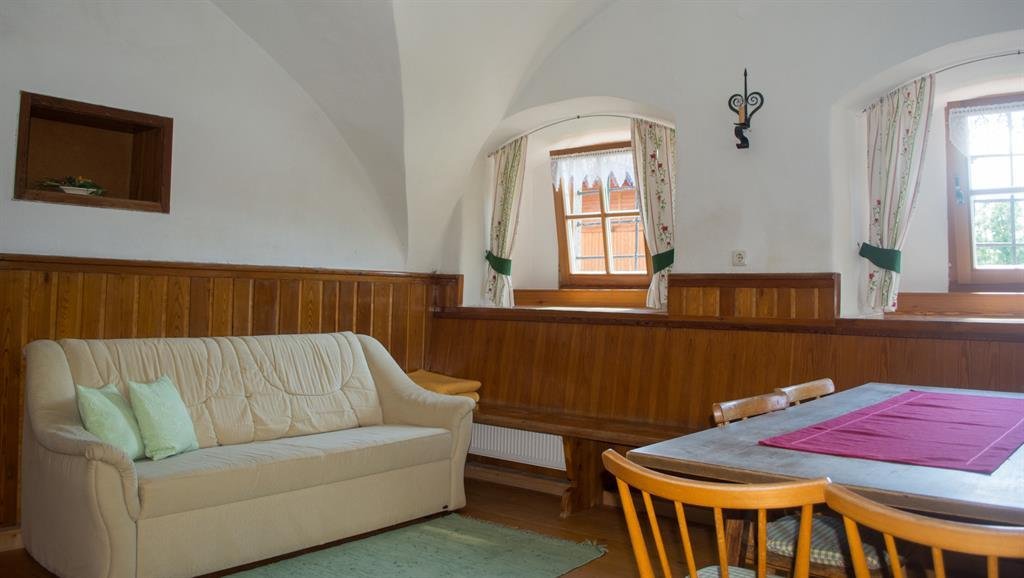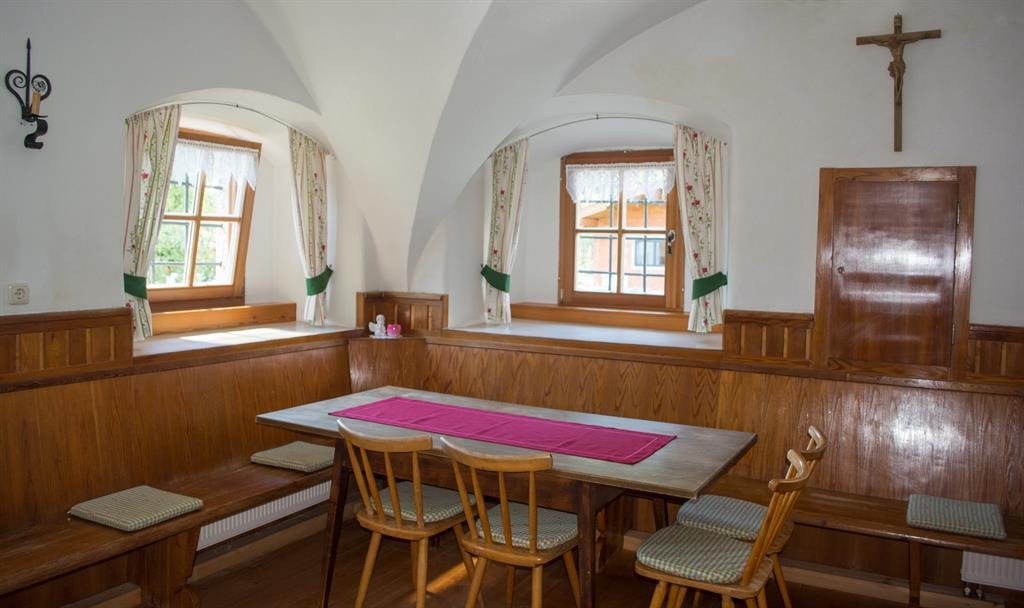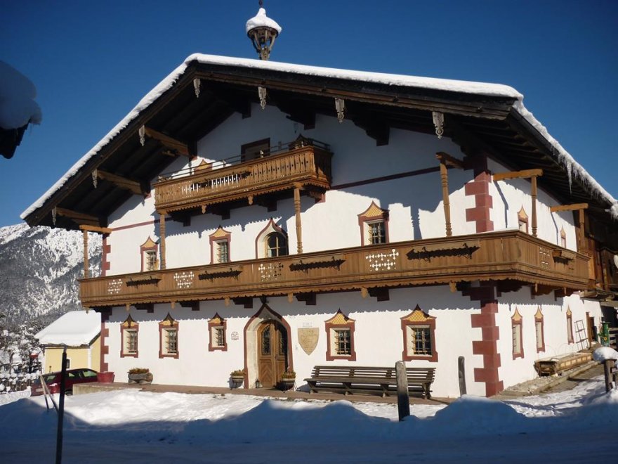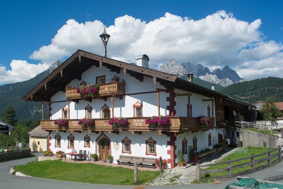 Our 470 years old farm is situated in the little farmer village Flecken. Surrounded by a wonderful mountain scenery. Only some meters to the lift Buchensteinwand and the cross country course. From the Buchensteinwand you can ski directly to our house. Only in 10 minutes with the car you are in the biggest snowparadies austrians Saalbach-Hinterglemm-Leogang- Fieberbrunn and the Steinplatte in Waidring. Also in summer it is an ideal starting point for bike tours and walks. But the most important thing for us is, that our guests are satisfied and enjoy their stay from the beginning. * the big rooms in which the children have a lot of place for playing * the tiled stove * the ceiling fresco, which is very exceptional * and the animals on our farm Your holiday will be an experience. Our house is also suitable for bigger families.