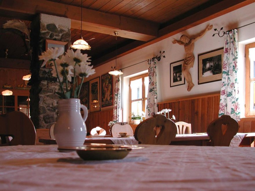 Exclusive inn directly in the skiing/hiking area, 19 beds in small, cosy bedrooms, nostalgically equipped with bunk beds for 2-4 persons, shower and WC in each room, daily restaurant, large sun terrace, play-room and playground for children; piano, guitar, zither for guest use available.