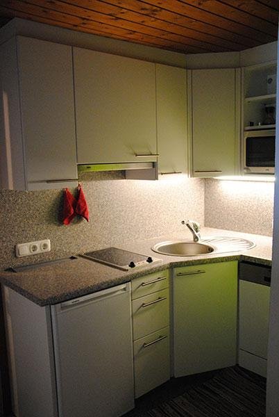 Apartment for 2 to 4 people with combined bed/living room (couchbed), kitchenette, 1 double room, shower/toilet, Sat-TV, balcony (can be reached from the hall), 45 m² .