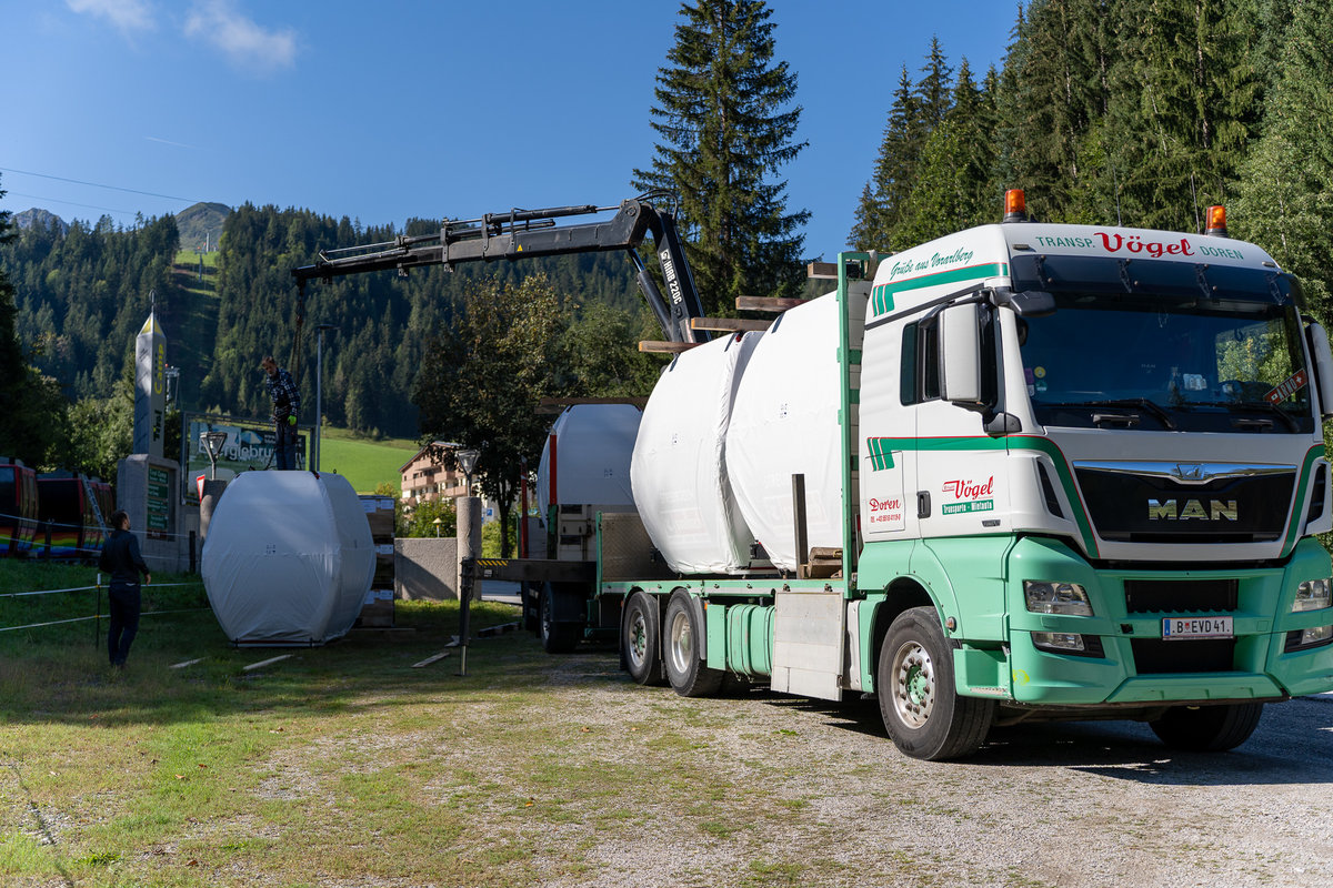 Since this week, the new gondolas have also been delivered semitrailer truck by semitrailer truck and stored temporarily. Despite being well covered, the size of the individual gondolas and the associated progress and comfort can already be seen very clearly.