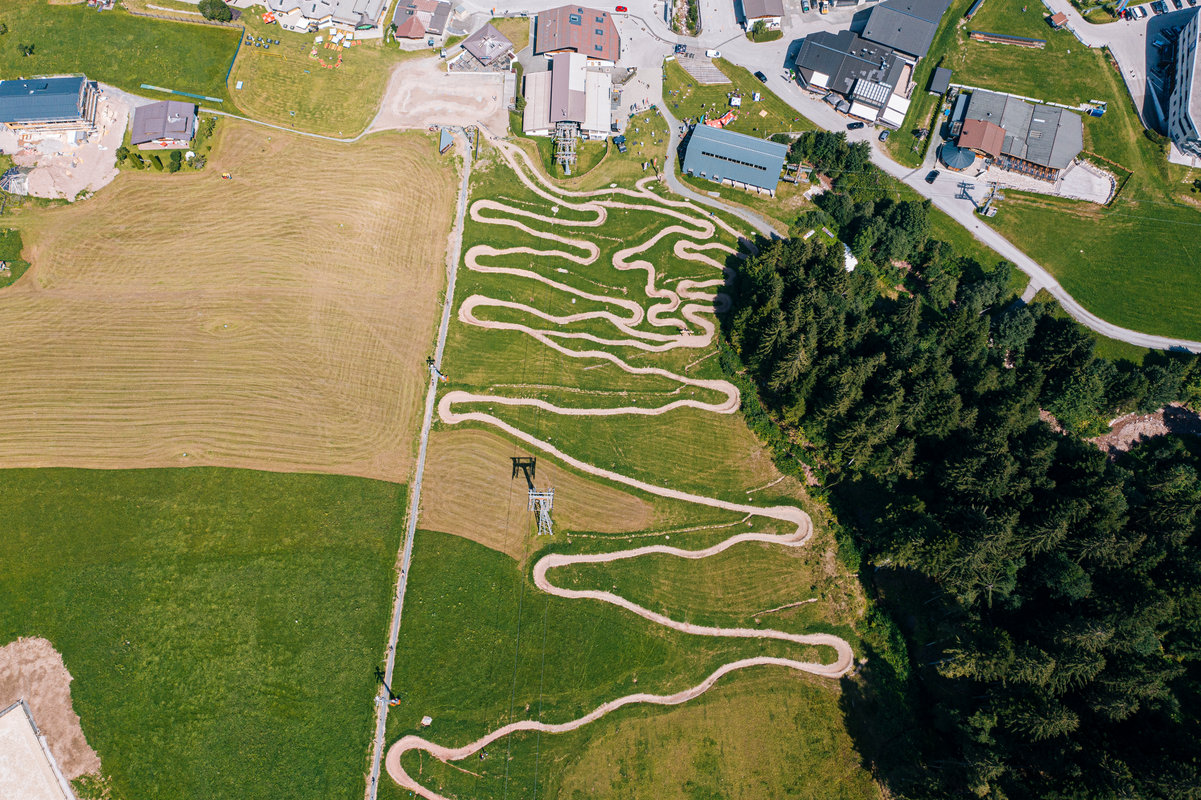 For all those who have never been to a bike park before or want to hone their technique, the Obingleitn t-bar-lift at the Streuböden valley station with the Hänsn Line is just the thing! Bike control and balance can be perfected on the 20 or 25 hairpin bends peppered with wooden elements. The F5 Obingleitn lift takes you to the top in comfort.