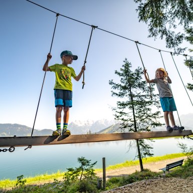 Hiking and via ferrata enthusiasts can continue on the cable car to the top station. The Lärchfilzkogel is an ideal starting point for hikes of all difficulty levels. The hike to the impressive lake Wildseeloder is particularly beautiful.